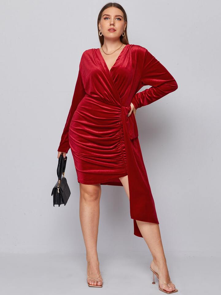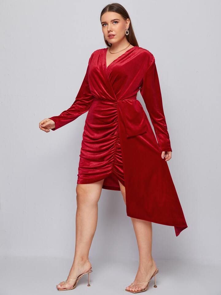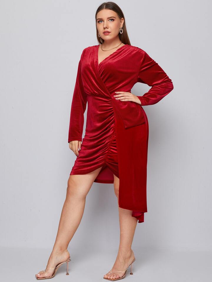 Vestidos Tallas Grandes Drapeado Liso Glamour