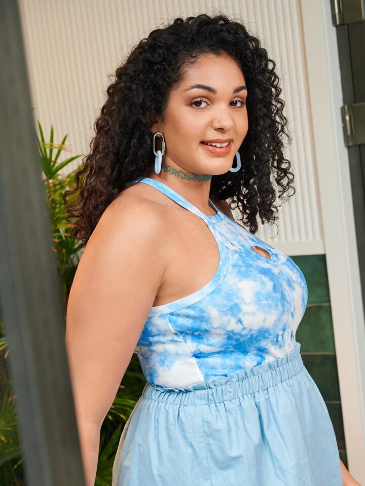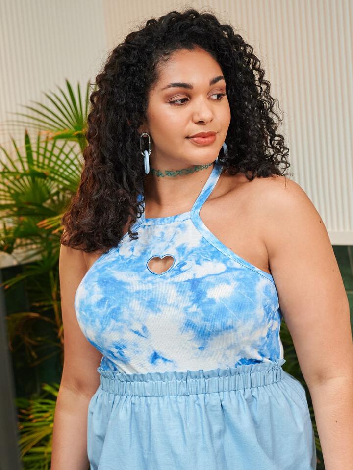 Camiseta Halter De Tinte Anudado Con Recorte En Tallas Grandes