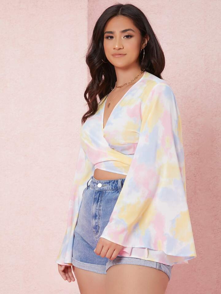Top corto con nudo trasero de cuello cruzado de tie dye
