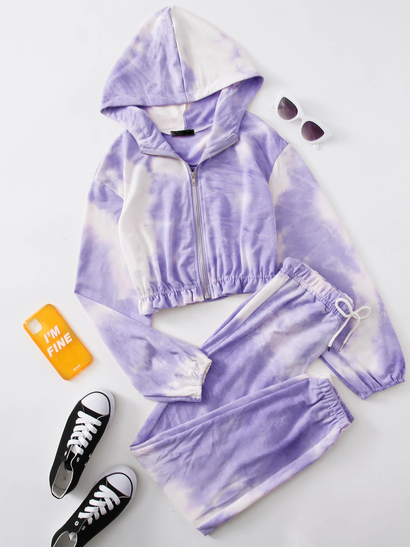 Capucha de tie dye con cremallera con joggers