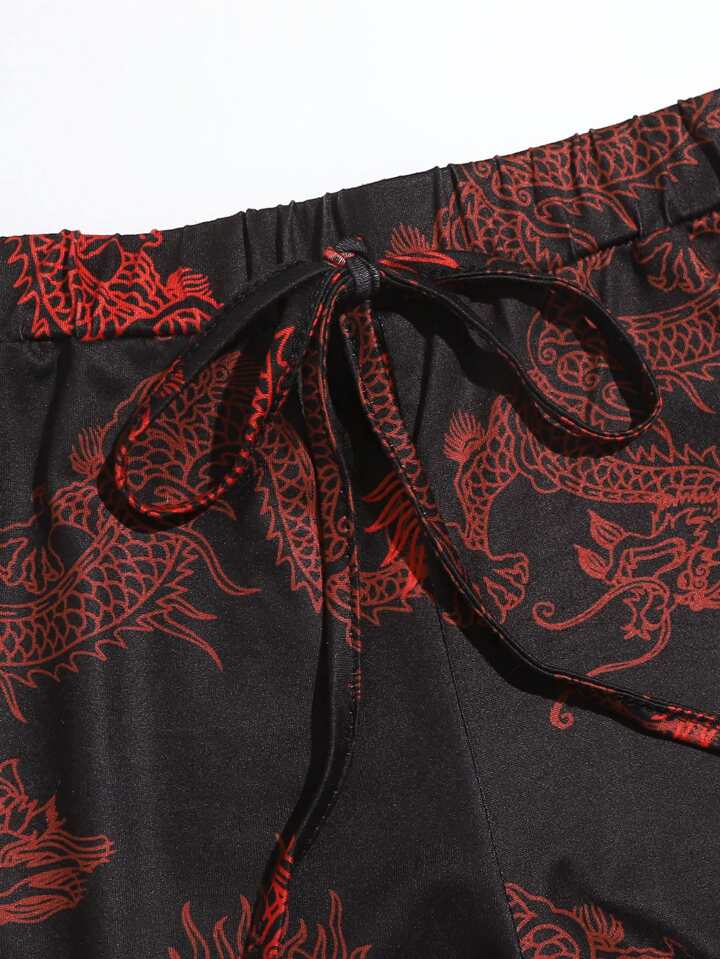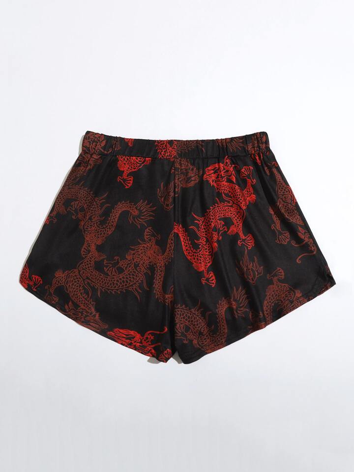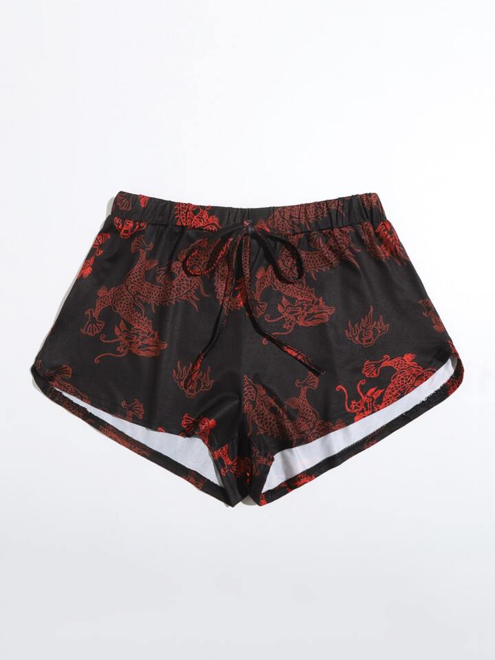 Shorts delfín con estampado de dragón chino con cordón delantero