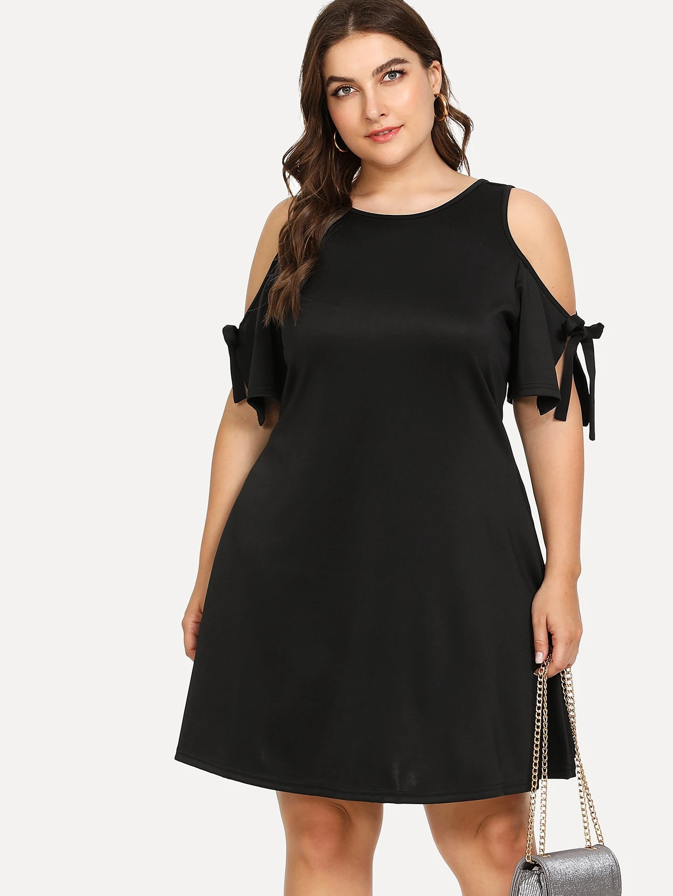 Vestido de manga con cordón de espalda con abertura de ojo de talla grande