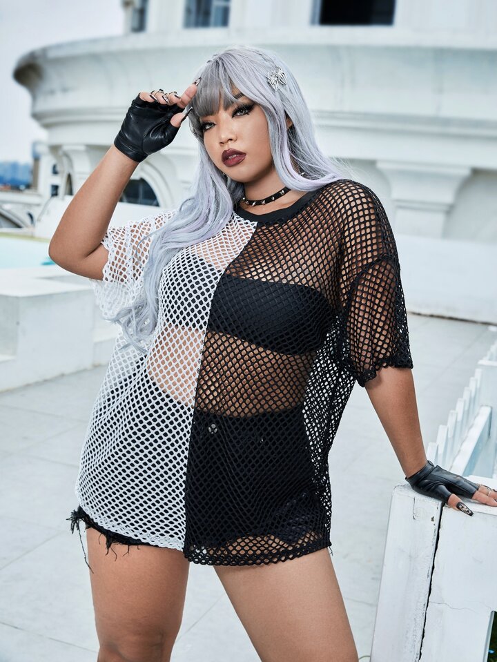 Top de dos tonos de hombros caídos de malla sin top tubo