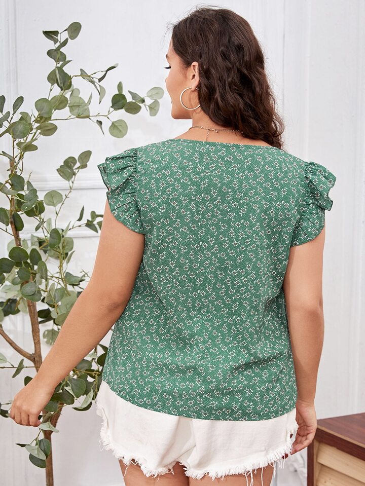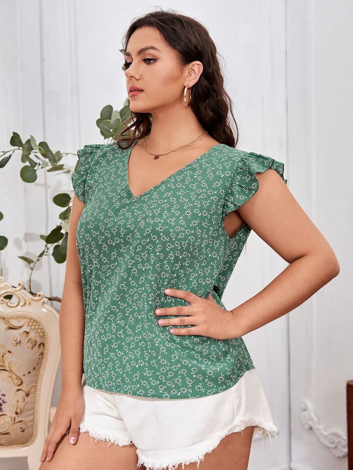Top De Flores Diminutas Con Escote En V Para Más Tallas