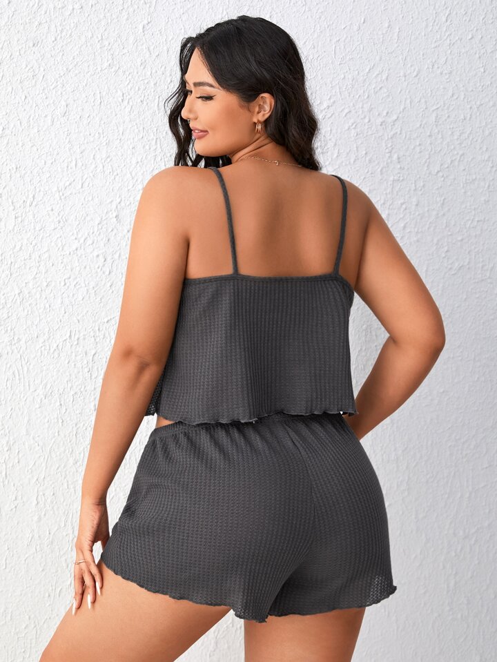 tejido waffle Top de tirantes & con nudo delantero Shorts Conjunto de pijama