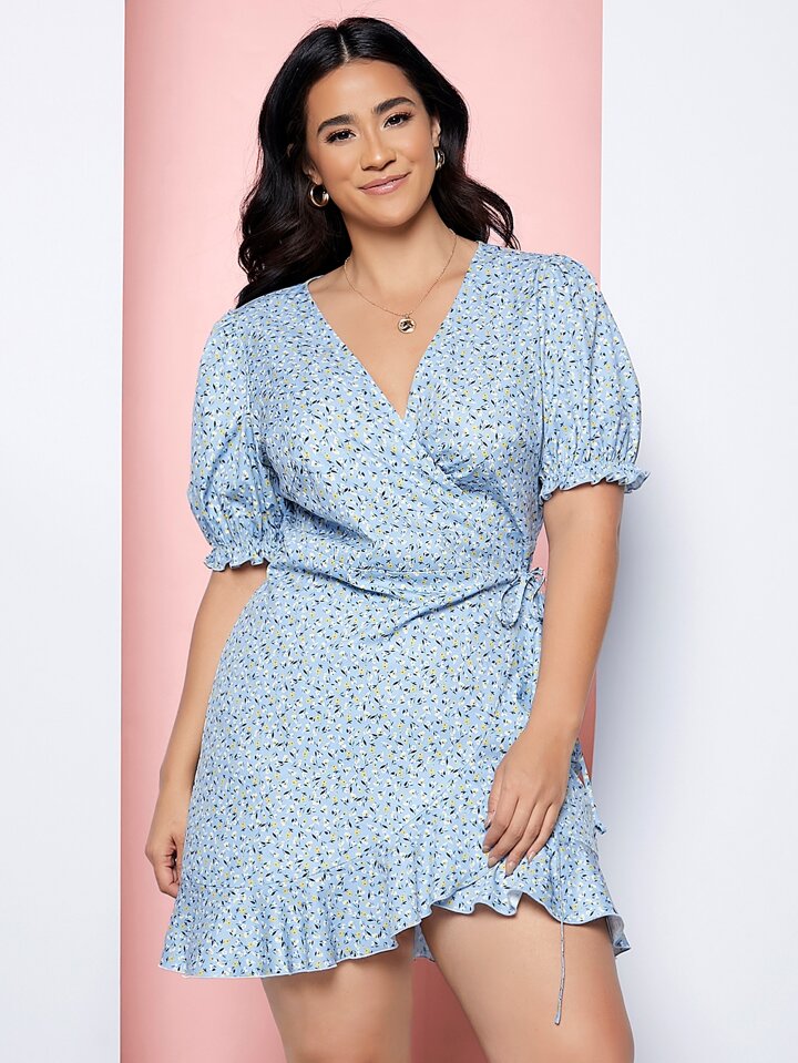 Vestido Floral Pequeño Envolvente Con Lazo Lateral Para Tallas Grandes