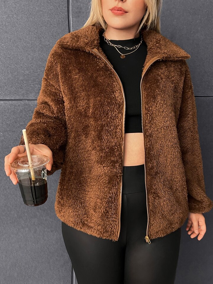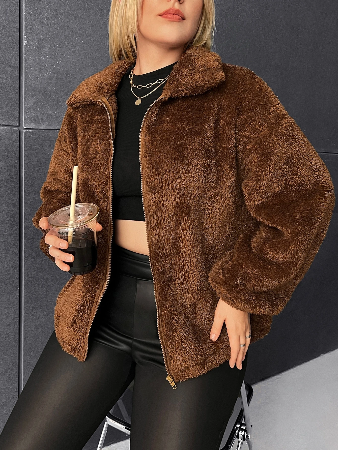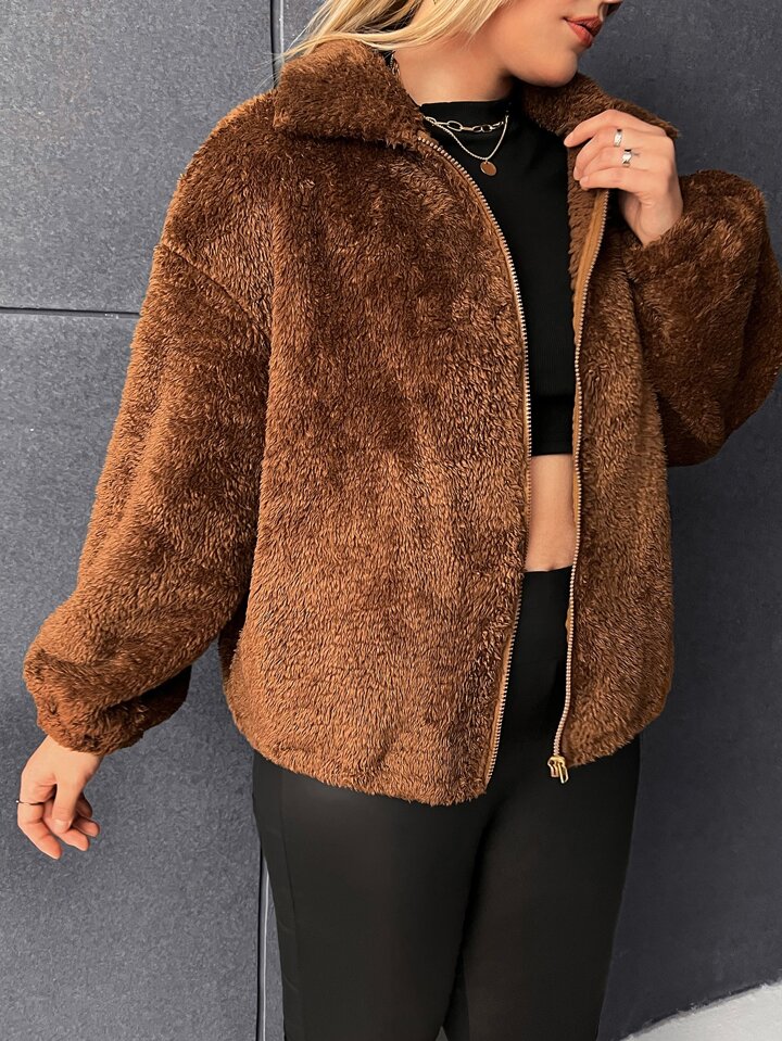 Cazadora con cremallera de hombros caídos de franela
