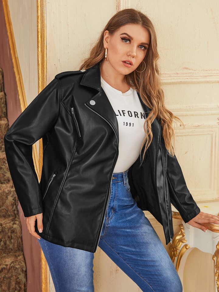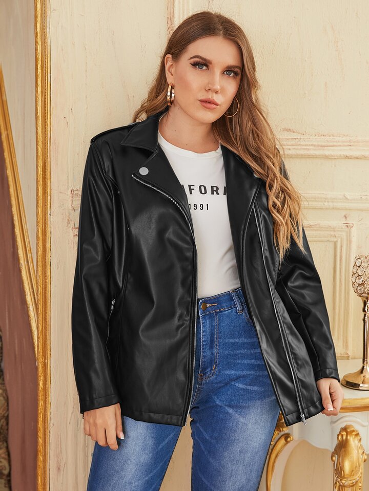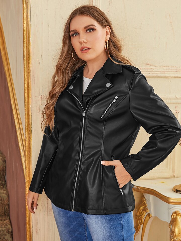 Cazadoras de talla grande Cremallera Liso Casual