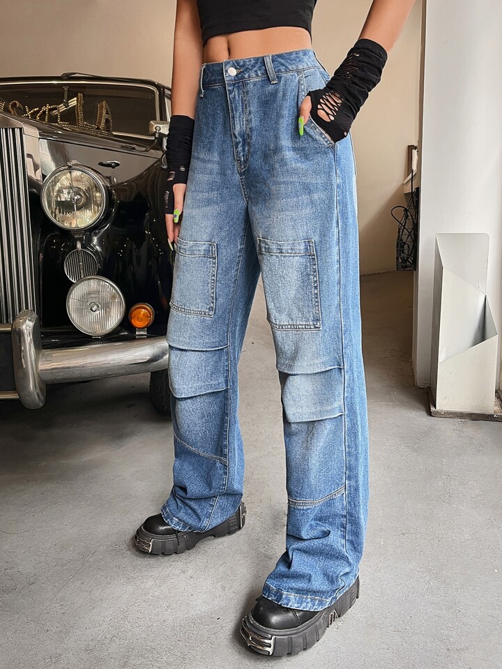 Jeans de pierna recta con parche de bolsillo