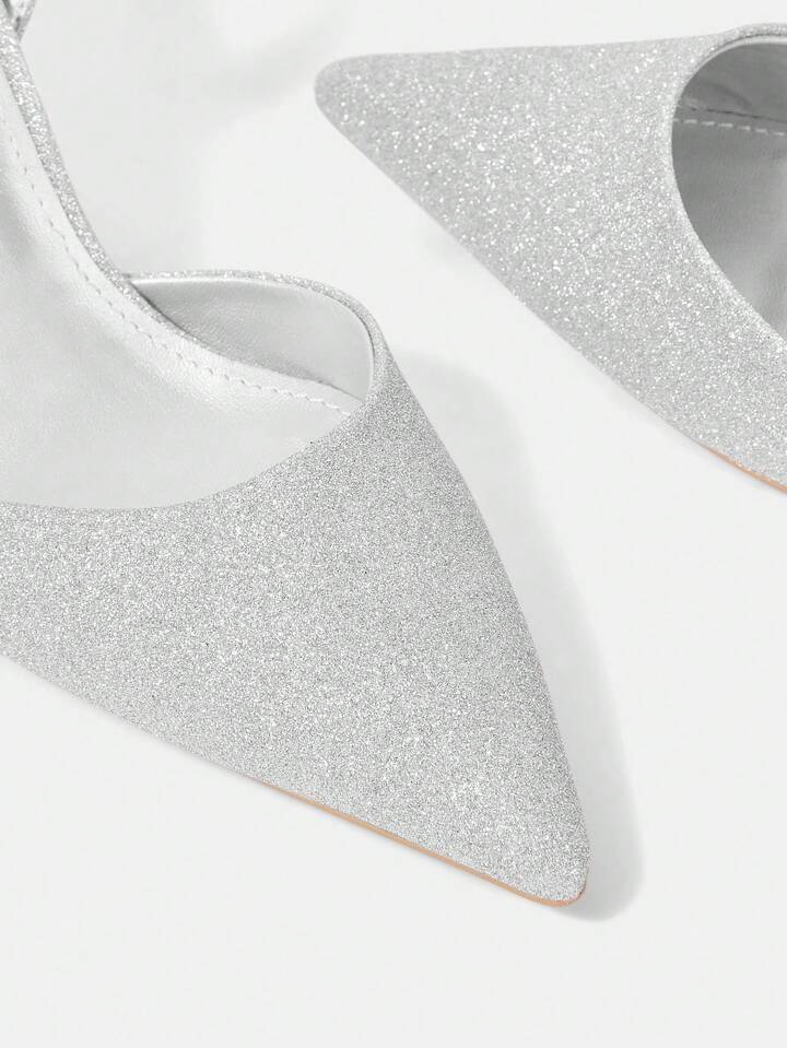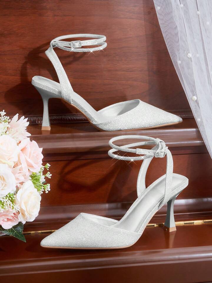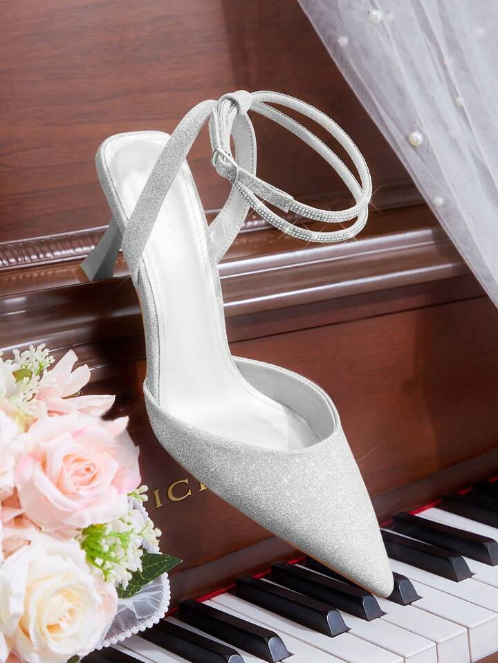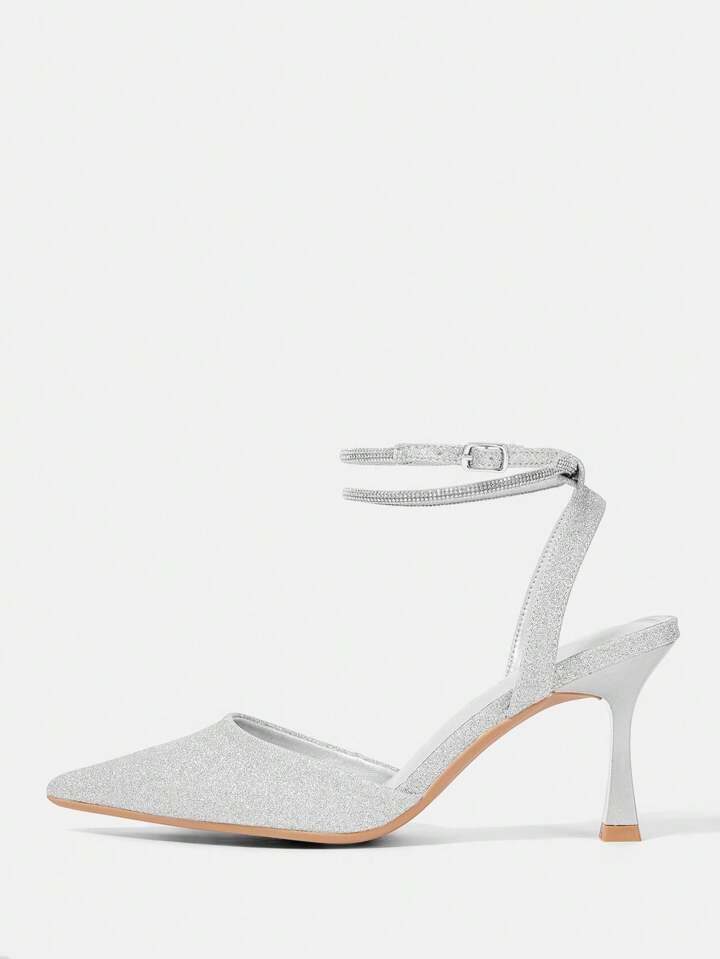 Sandalias casuales de tacón de aguja con una hebilla, punta afilada, empeine bajo y sin talón, ideales para Año Nuevo, Día de San Valentín y días festivos