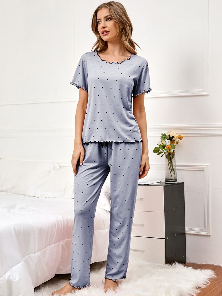 Conjunto de pijama con estampado de lunares, con top con volante y pantalón - Pijama/Ropa de descanso para mujer