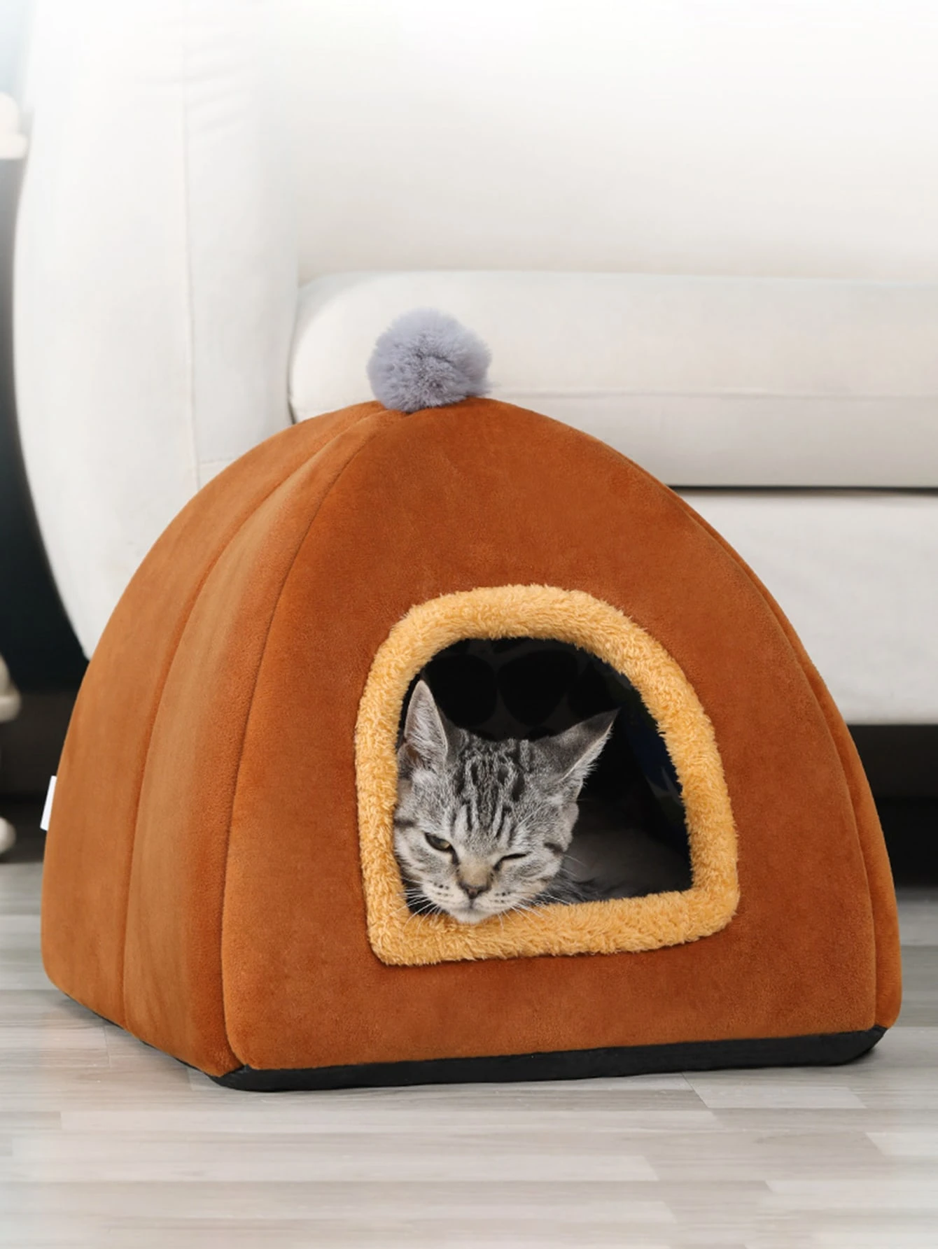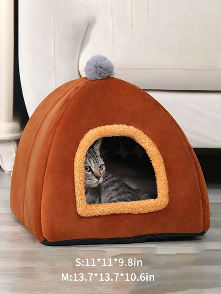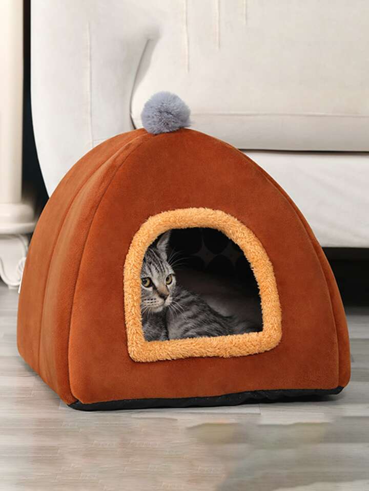 Cama para mascotas con diseño de pompón