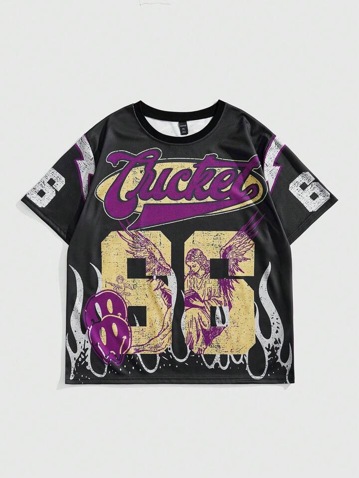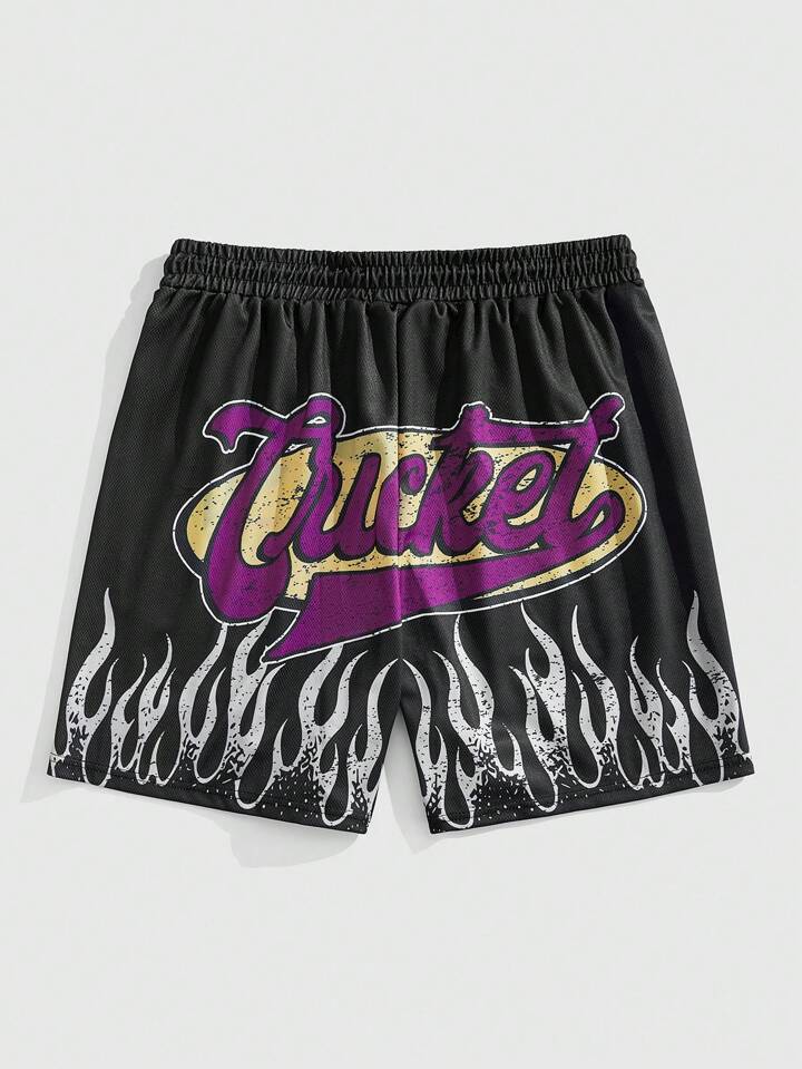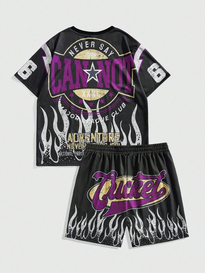 Prep Set de 2 piezas de camiseta de manga corta con estampado de letras y shorts deportivos para hombres