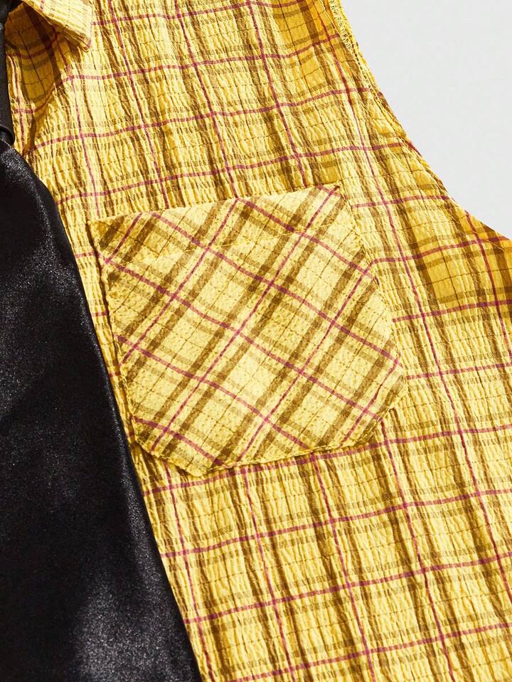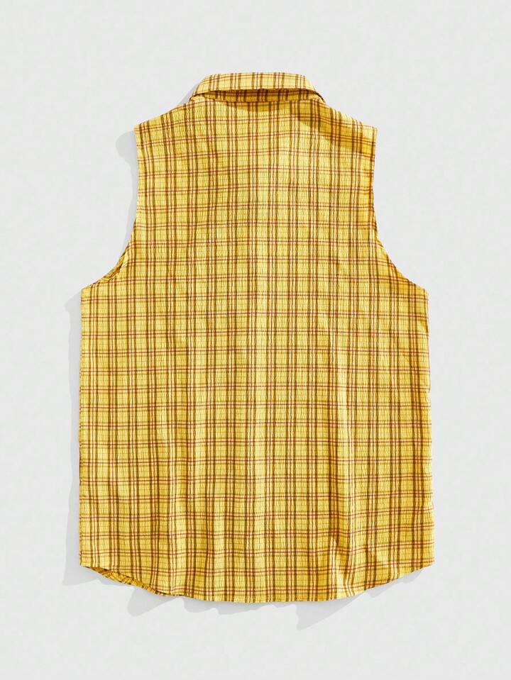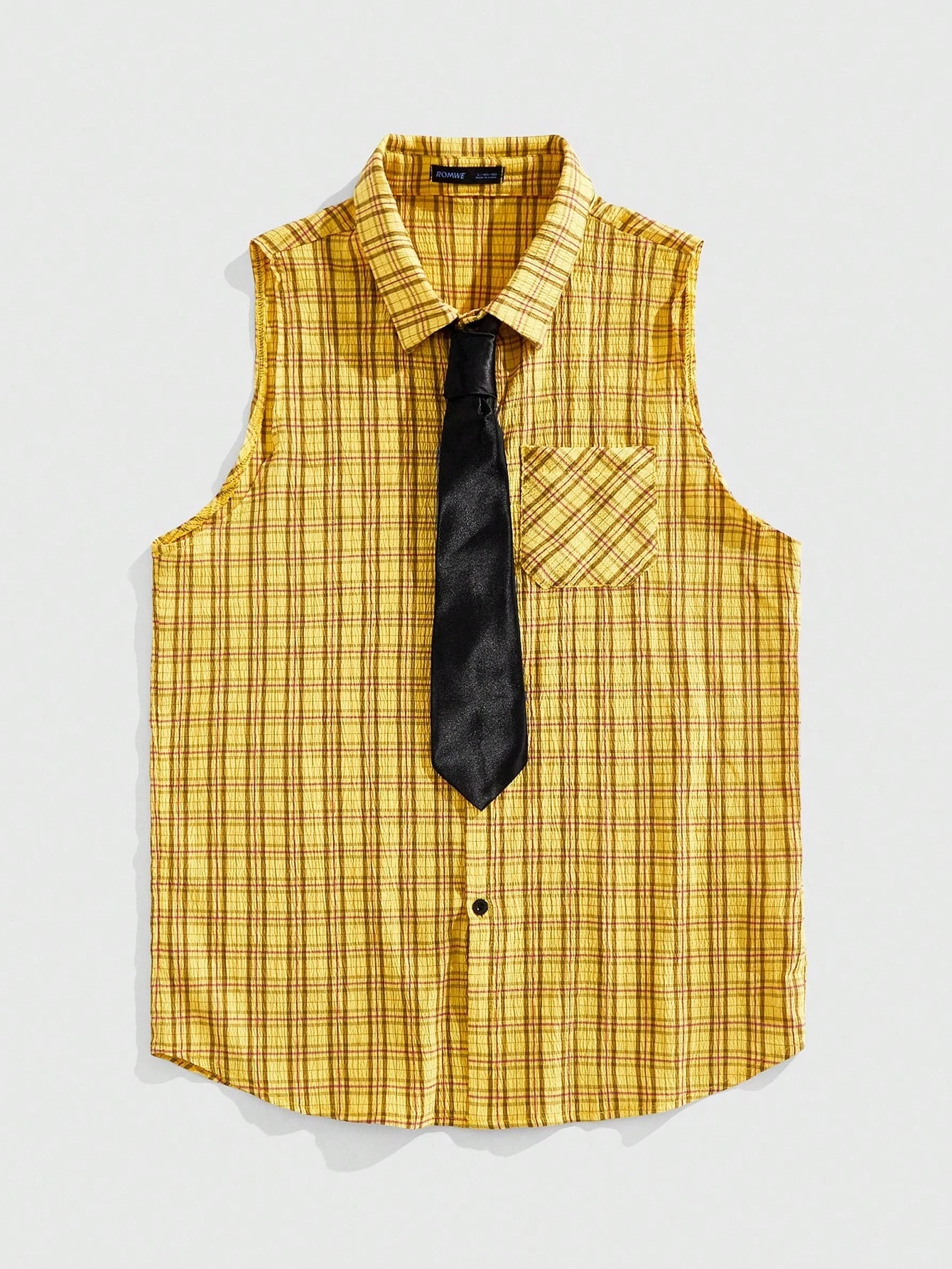 Prep Camisa de corbata sin mangas a cuadros de moda casual personalizada para hombres