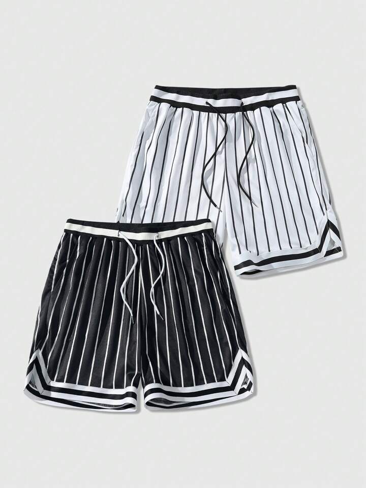 Prep Pantalones cortos informales de hombre con cintura con cordón a rayas
