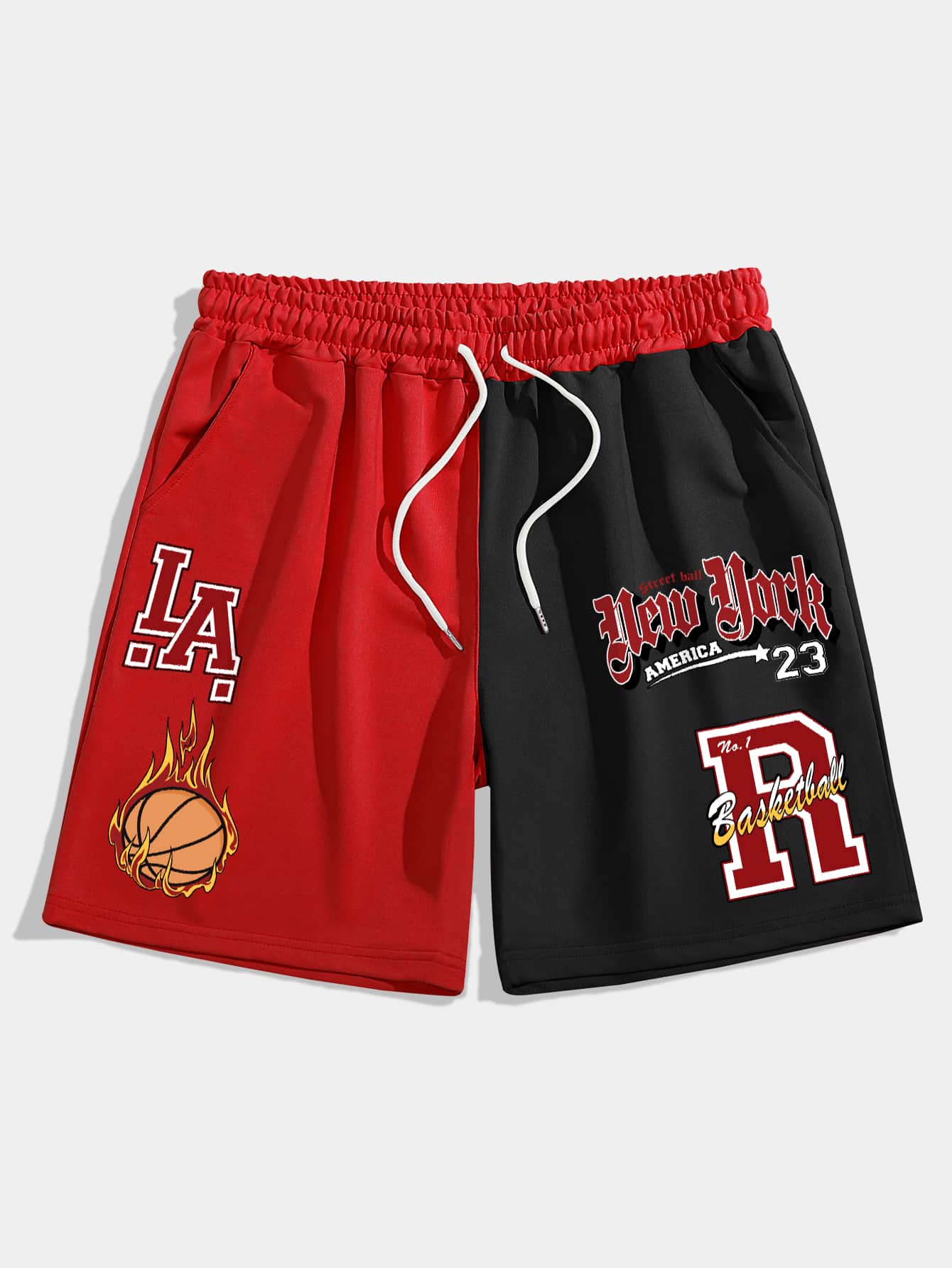 Prep Hombres Shorts con estampado de baloncesto y letra de dos tonos de cintura con cordón