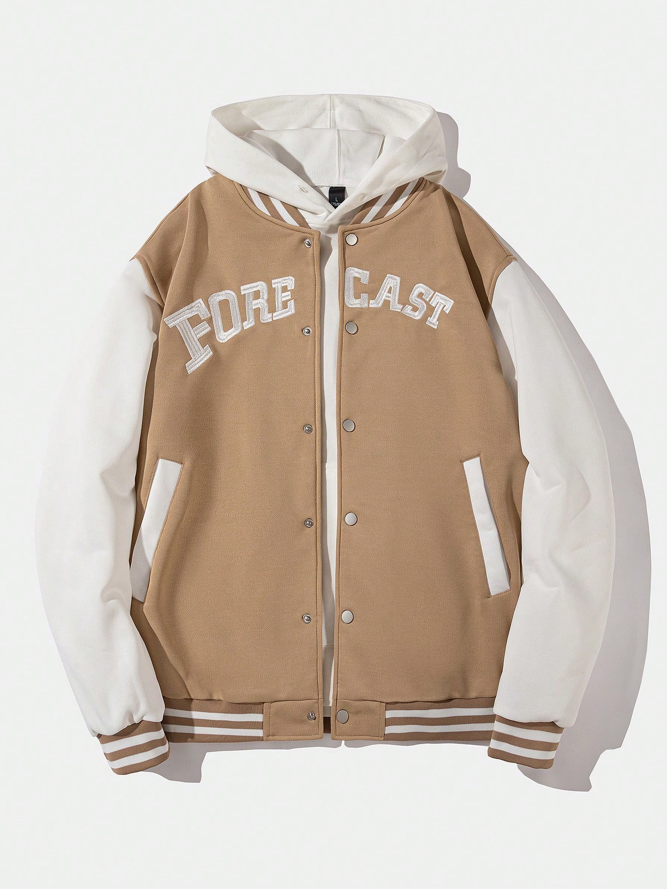 Prep Hombres Cazadora de universidad con bordado de letra de color combinado con botón delantero
