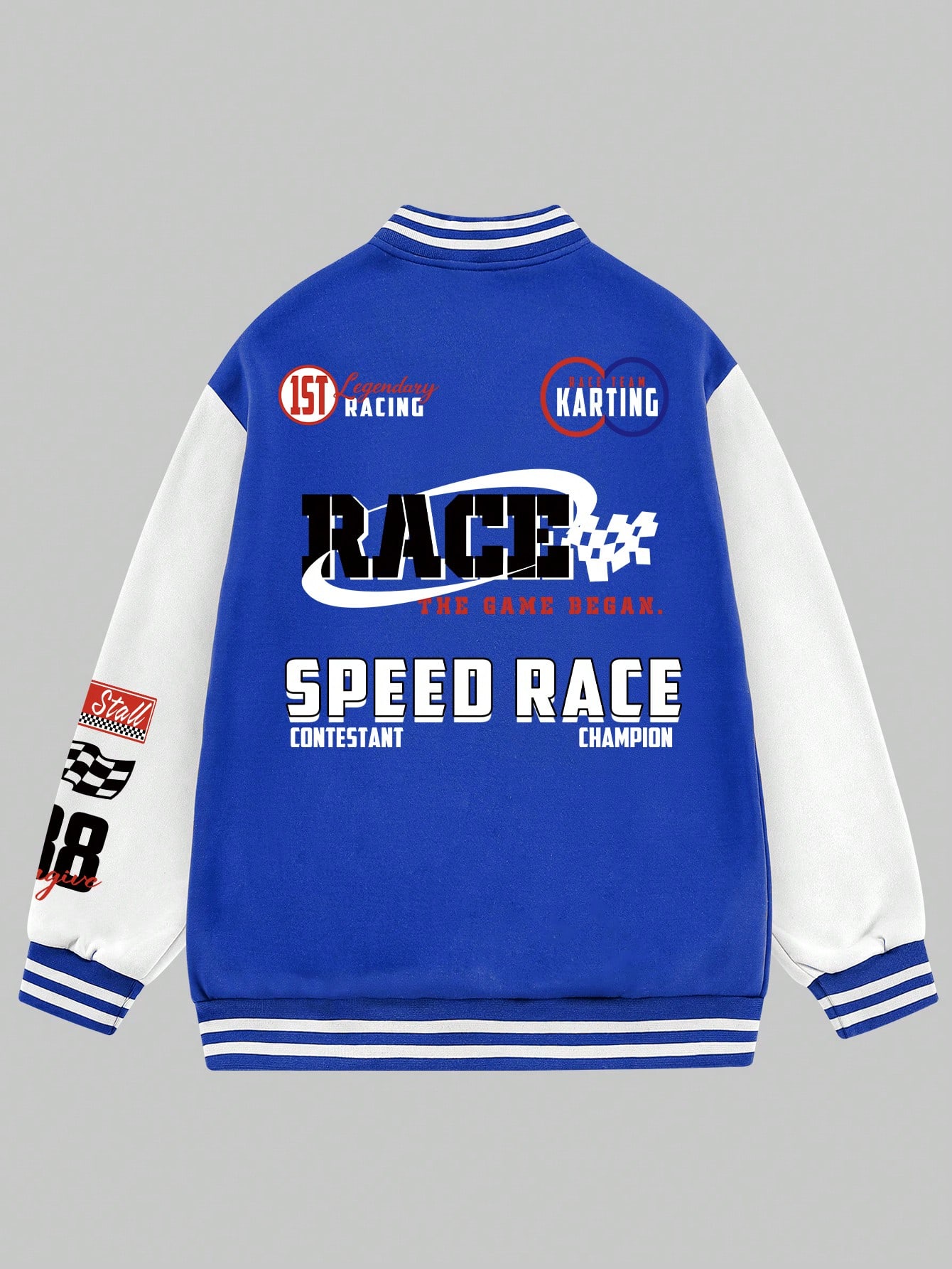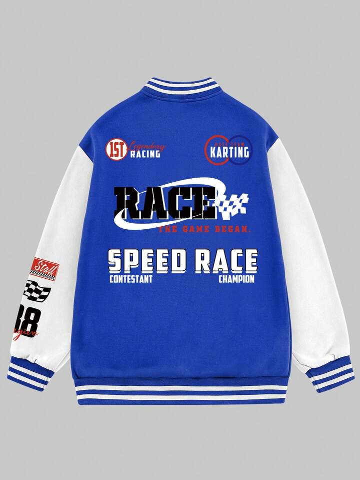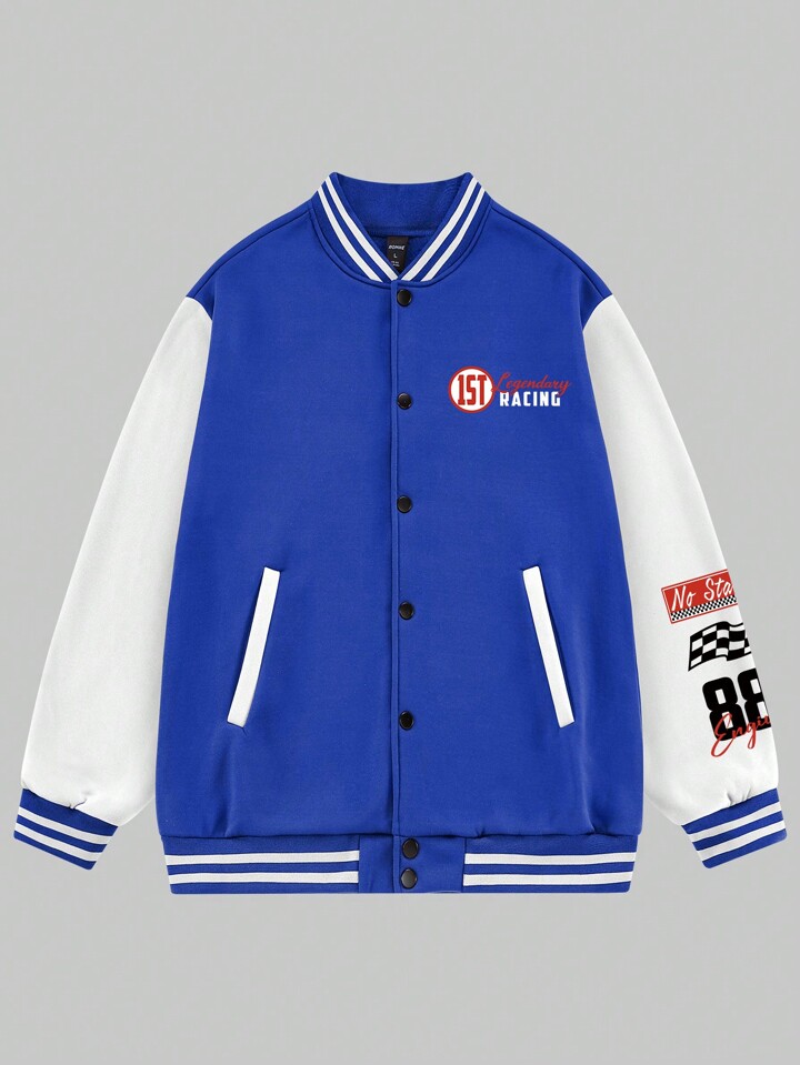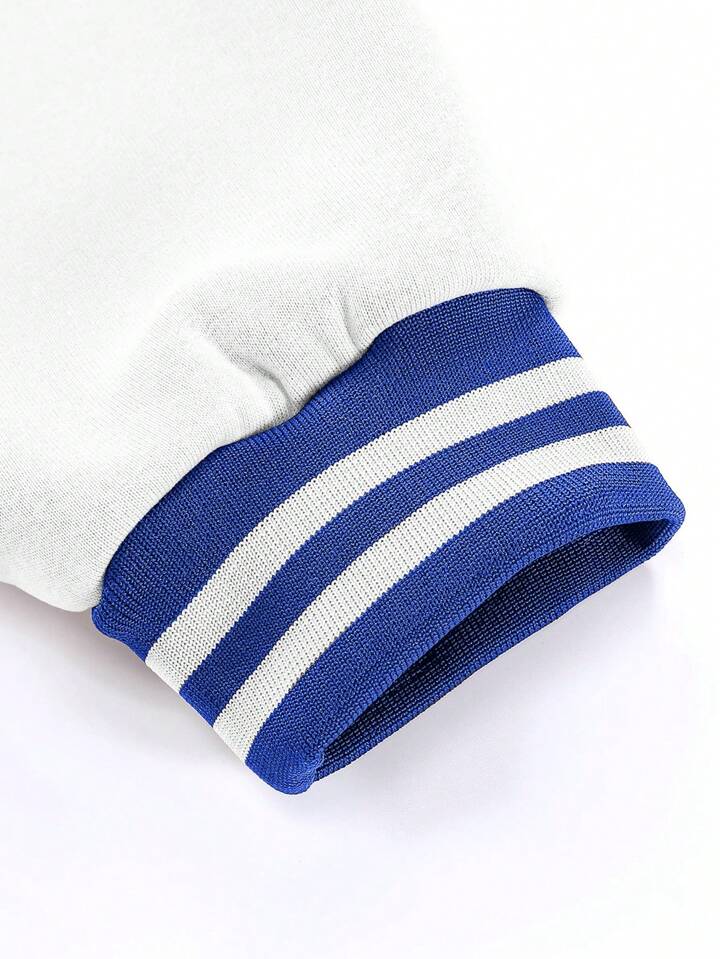 Prep Hombres Cazadora de universidad con estampado de letra ribete de rayas