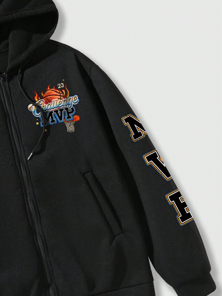 Prep Hombres Capucha con estampado de letra con cremallera con cordón con forro térmico