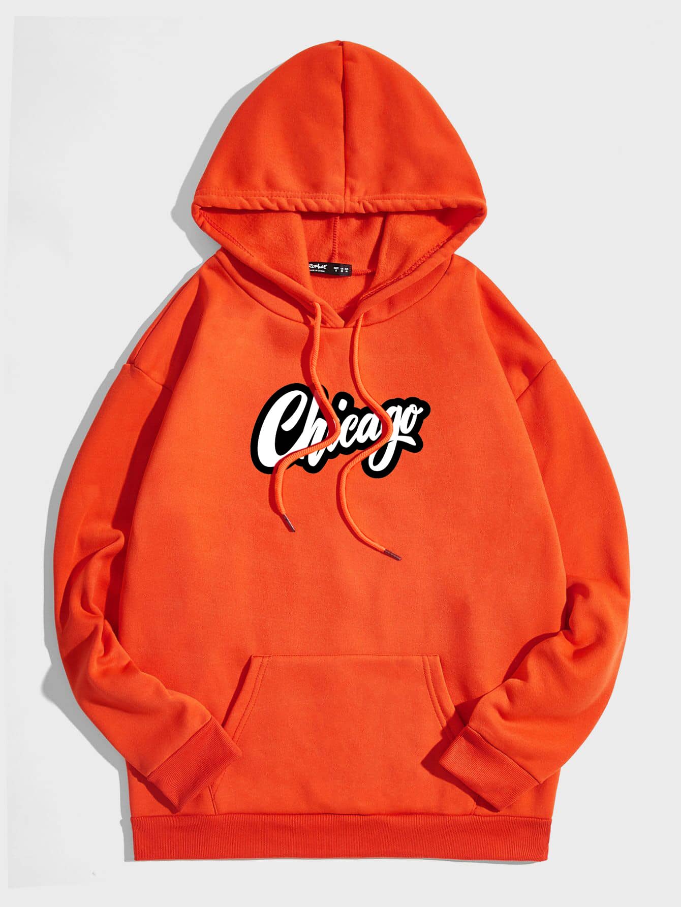 Prep Hombres Capucha con letra con bolsillo de canguro con cordón