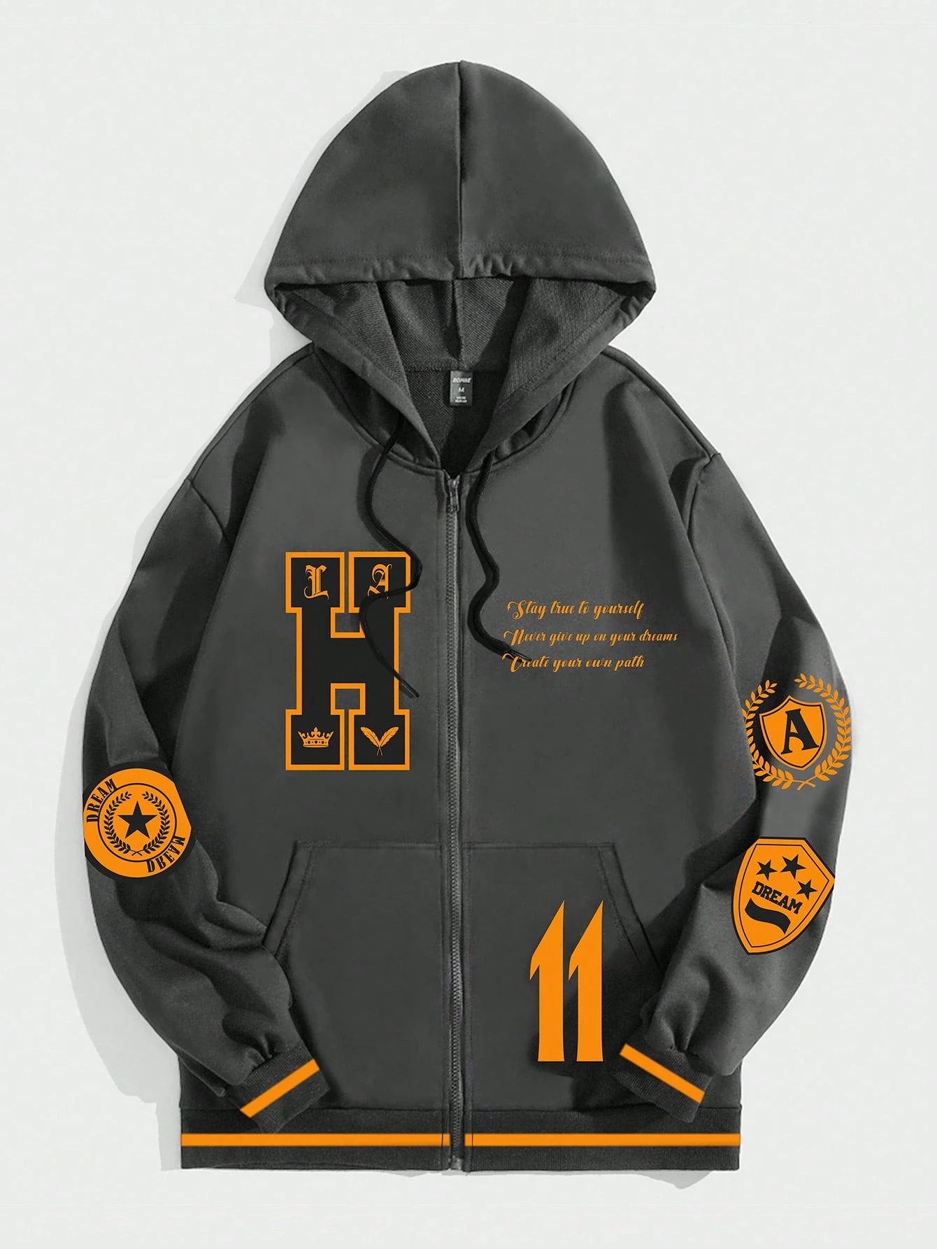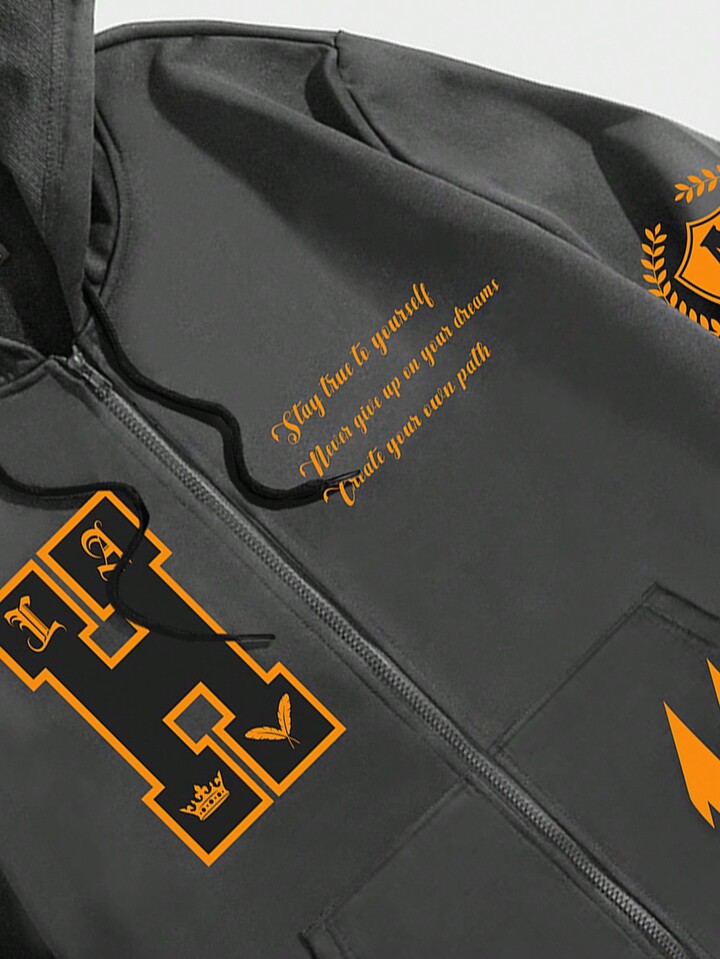 Prep Hombres Capucha con estampado de slogan con cremallera con cordón