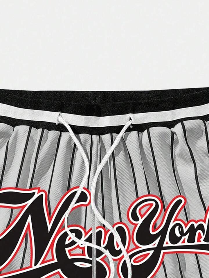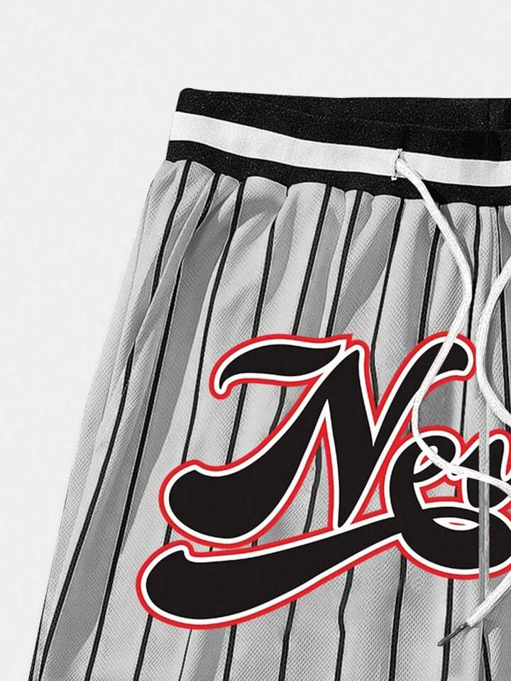 Prep Hombres Shorts con estampado de rayas y letra de cintura con cordón