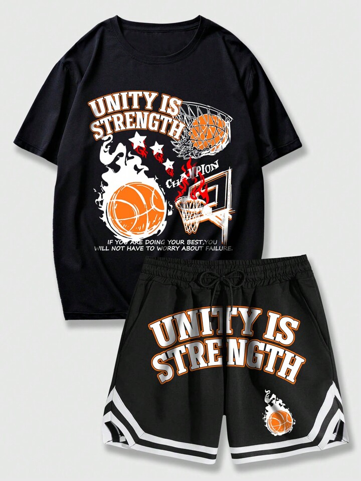 Prep Conjunto De Dos Piezas De Camiseta Y Pantalón Corto Con Eslogan De Baloncesto Para Hombre