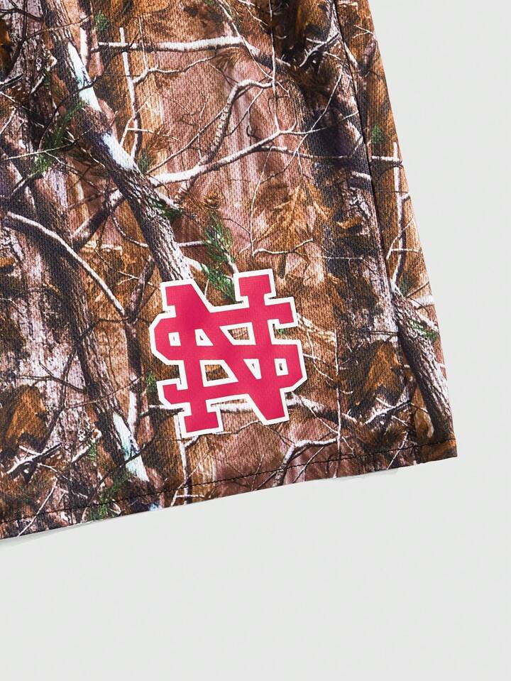 Prep Pantalones cortos de baloncesto con estampado de rama de moda deportiva para hombres, escuela