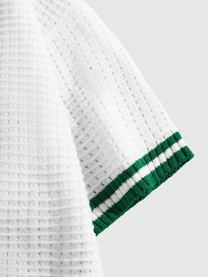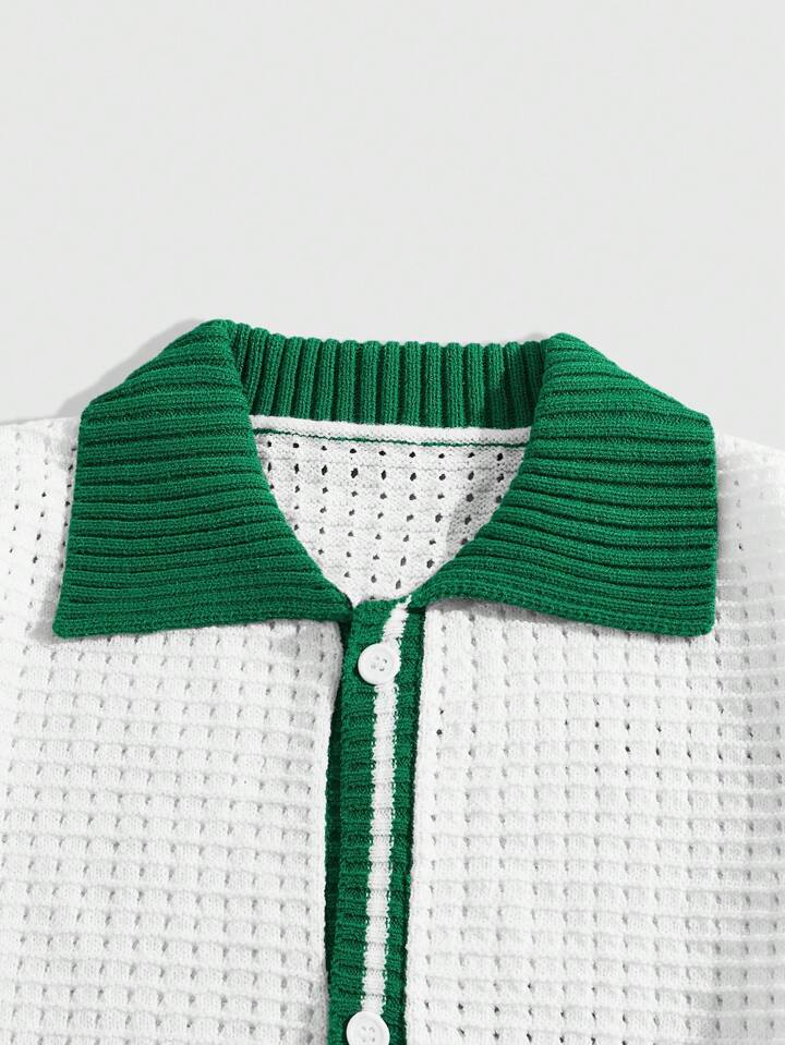 Prep Camisa de punto con botones informal y elegante a rayas verdes para uso diario, escuela