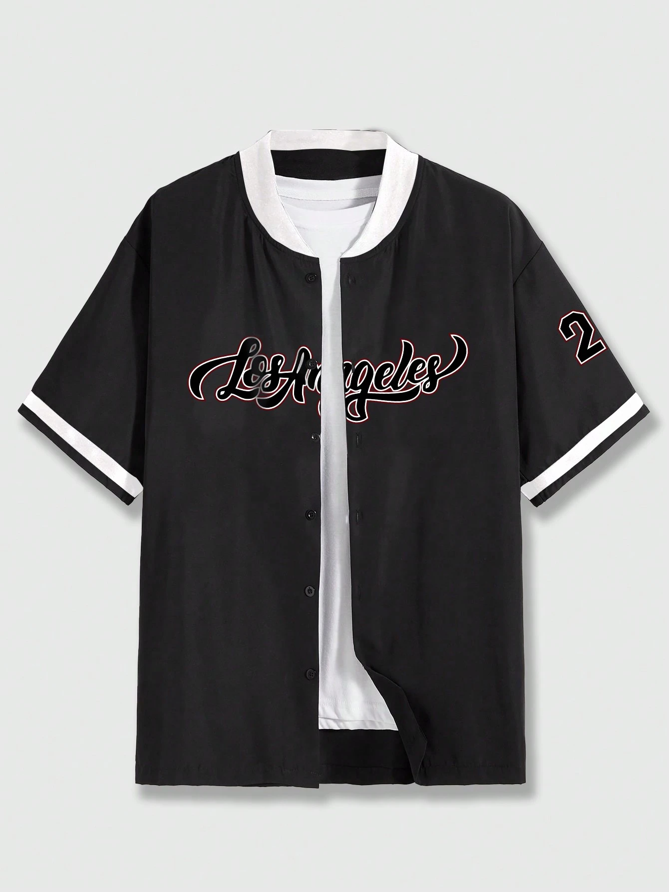 Prep Hombres Camisa Con Cuello Tipo Béisbol Con Ribete En Contraste Y Estampado De Letra Sin Camiseta