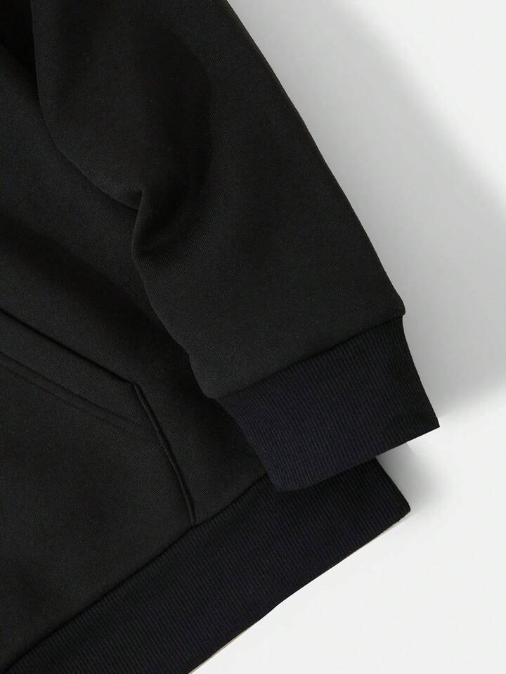 Prep Hombres Con Letras Gráficas Bolsillo De Canguro Con Cordón Forrado Con Capucha Térmica