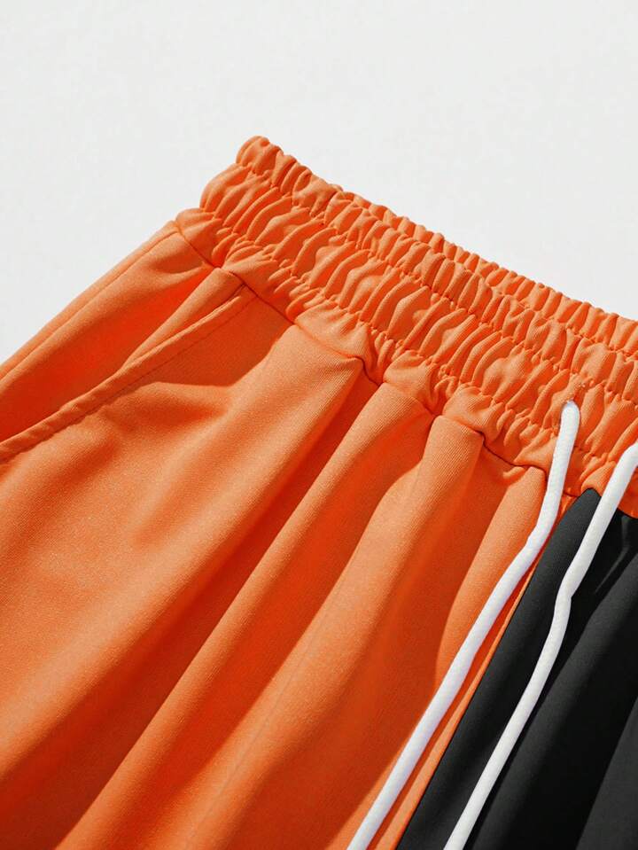Prep Camiseta De Dos Tonos Con Gráficos Y Pantalones Cortos Con Cordón Para Cintura Para Hombres