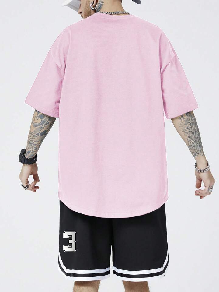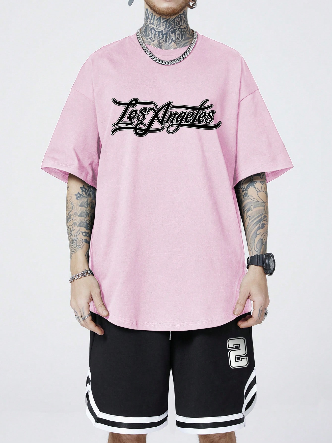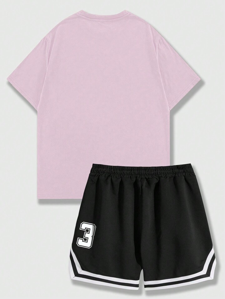 Prep Conjunto De Camiseta Con Estampado De Letra Para Hombre Y Pantalones Cortos Con Cintura Elástica Ajustable Y Detalle De Raya En El Borde