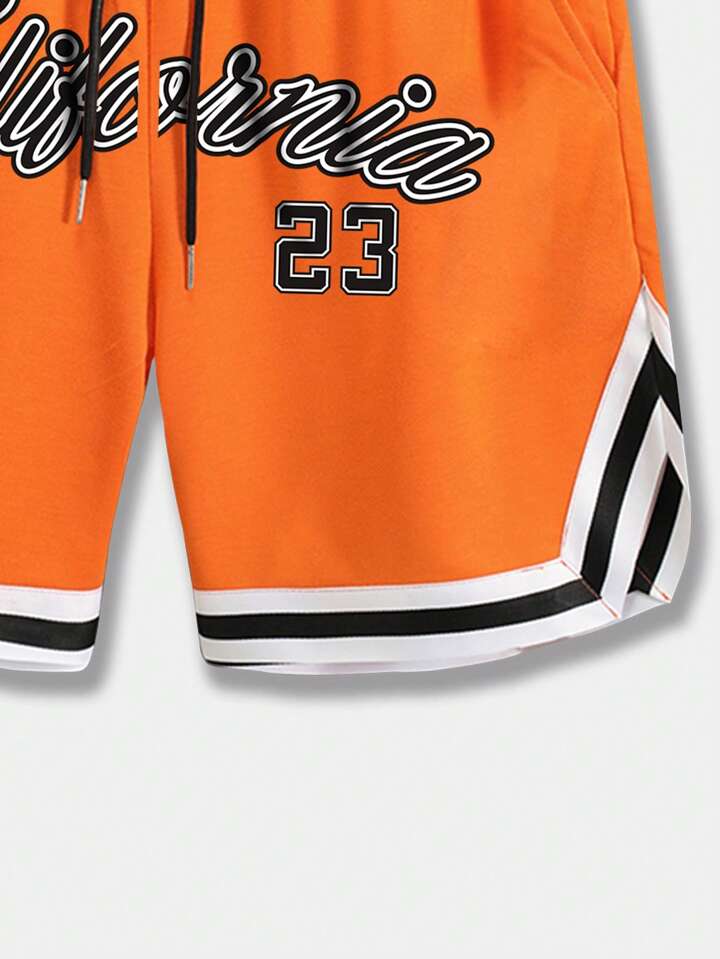 Prep Pantalones Cortos De Letras Con Ribete A Rayas Para Hombre