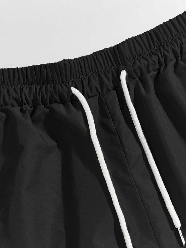Prep Pantalones cortos con cordón en la cintura y bordado de rosas para hombres, escuela