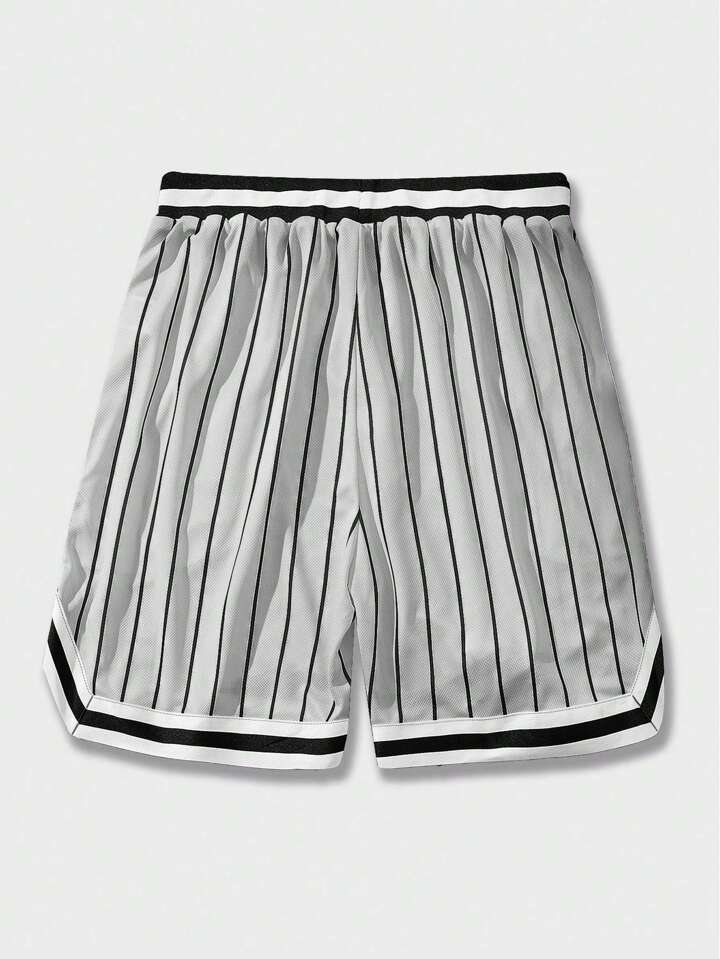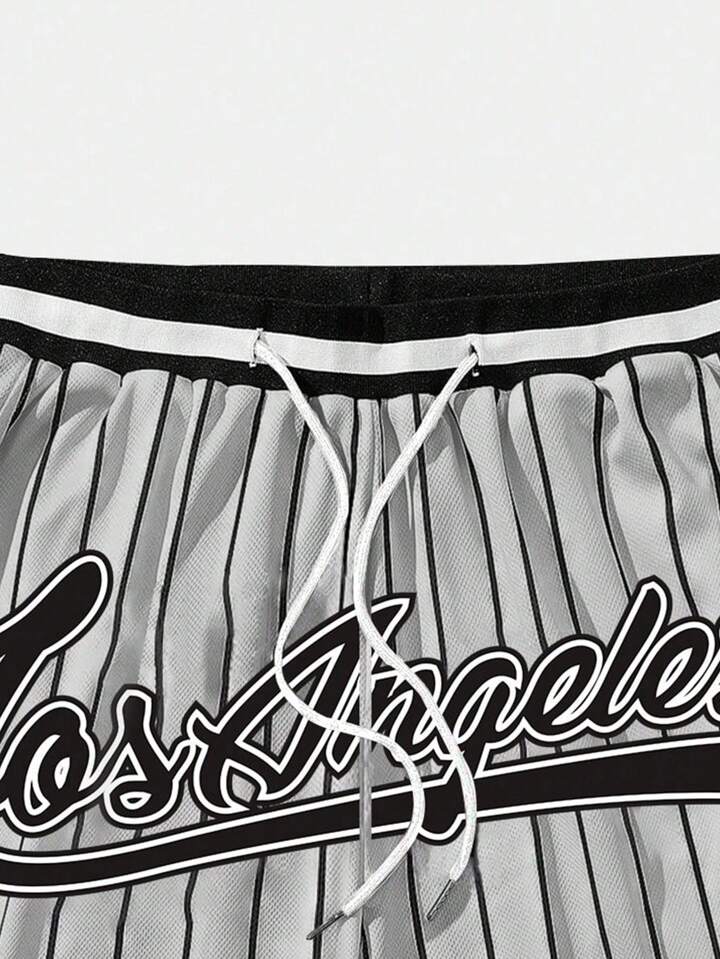 Prep Pantalones cortos de malla de baloncesto de verano informales y deportivos con cintura con cordón, rayas y estampado de letra, para la escuela