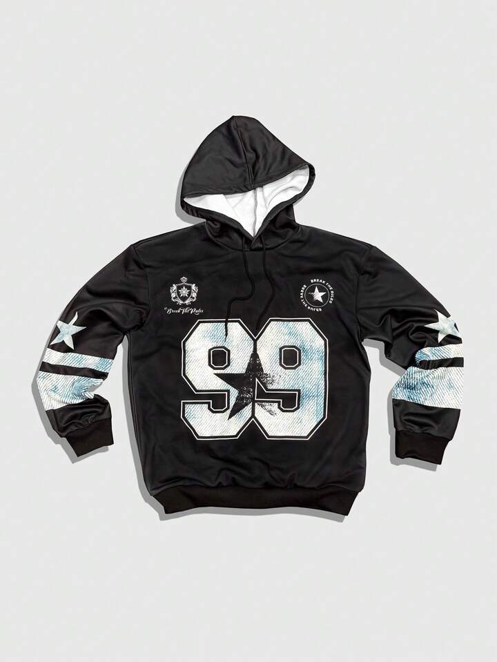 Prep Conjunto de sudadera con capucha y pantalones de chándal casuales con estampado numérico de manga larga de otoño para hombre