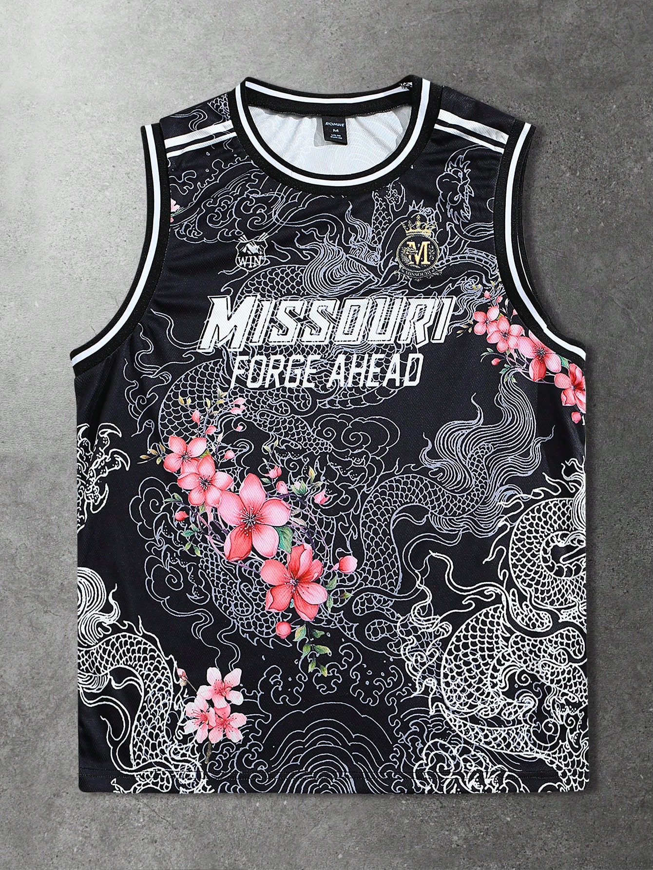 Prep Camiseta de tirantes casual con estampado floral y de letras para hombre