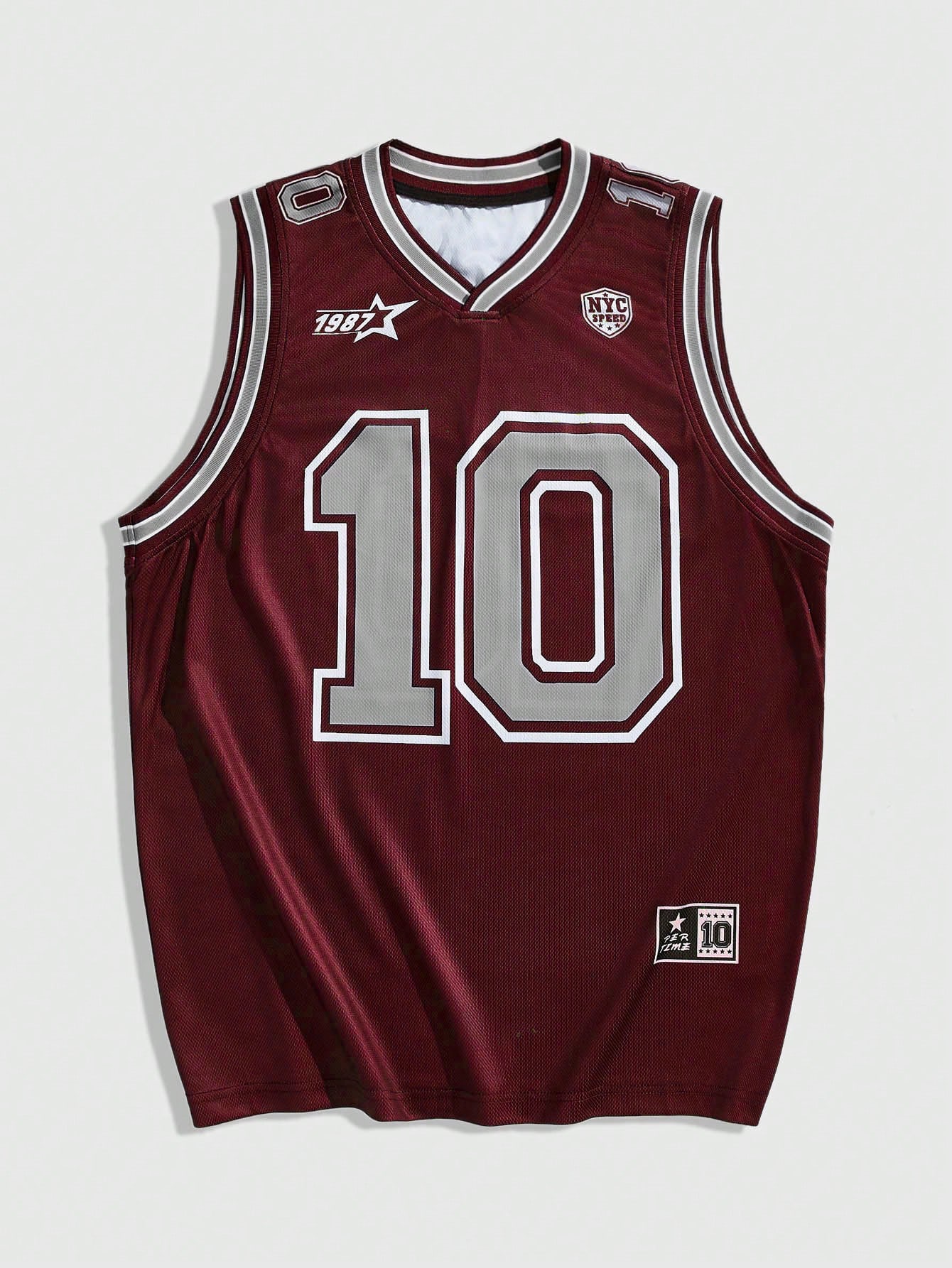 Prep Camiseta de tirantes de corte holgado con cuello en V y estampado numérico, versátil para hombre