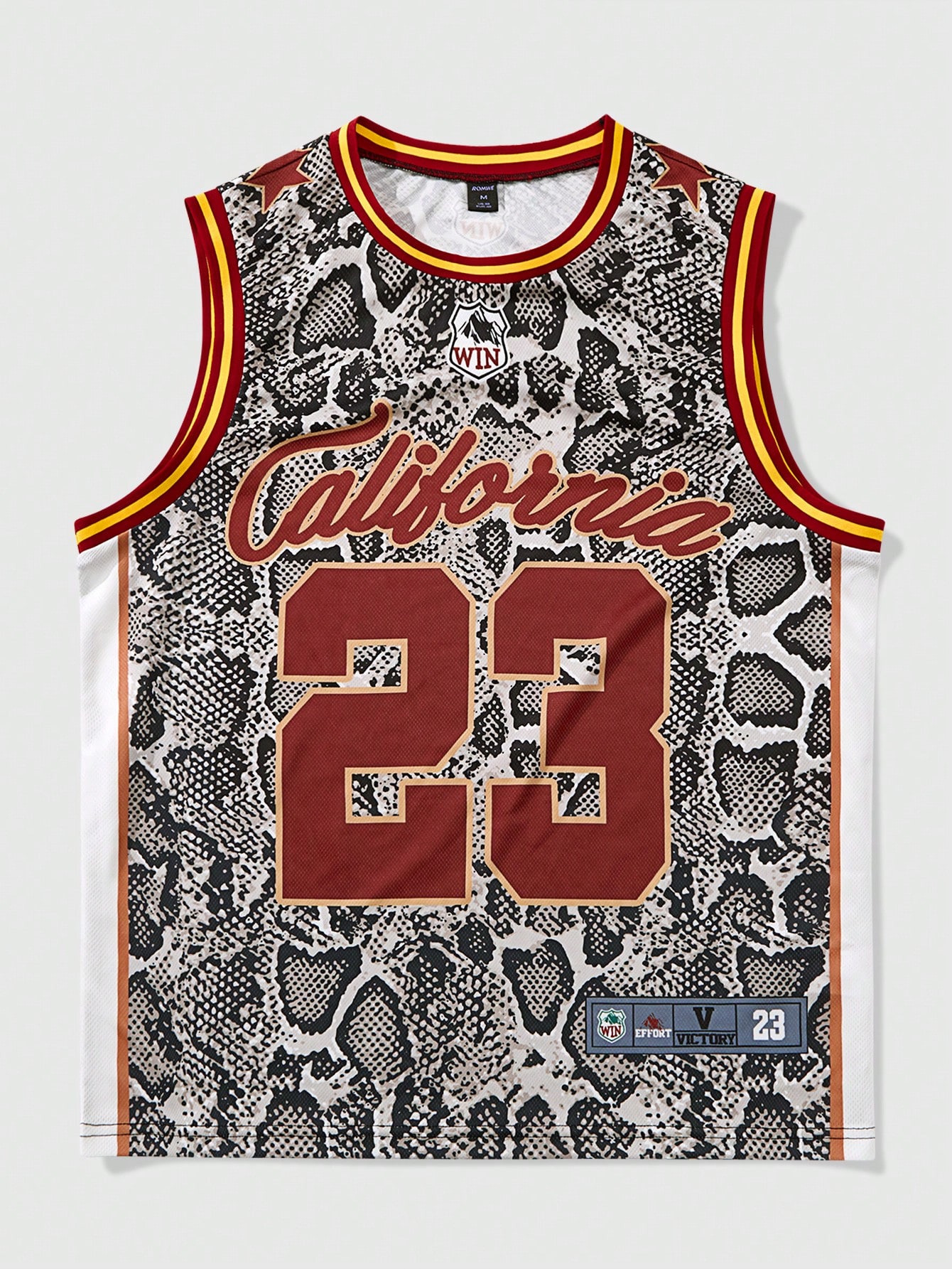 Prep Camiseta sin mangas casual de hombre con estampado de serpiente, gráfico de letra y ribete a rayas para el verano