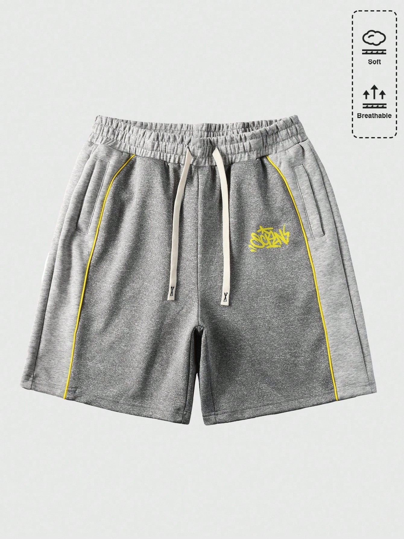 Prep Pantalones cortos de hombre con cordón en la cintura, bolsillo y estampado de rayas y letras en color contrastante