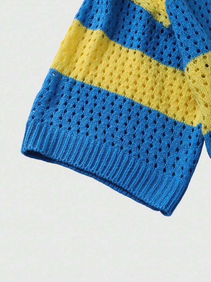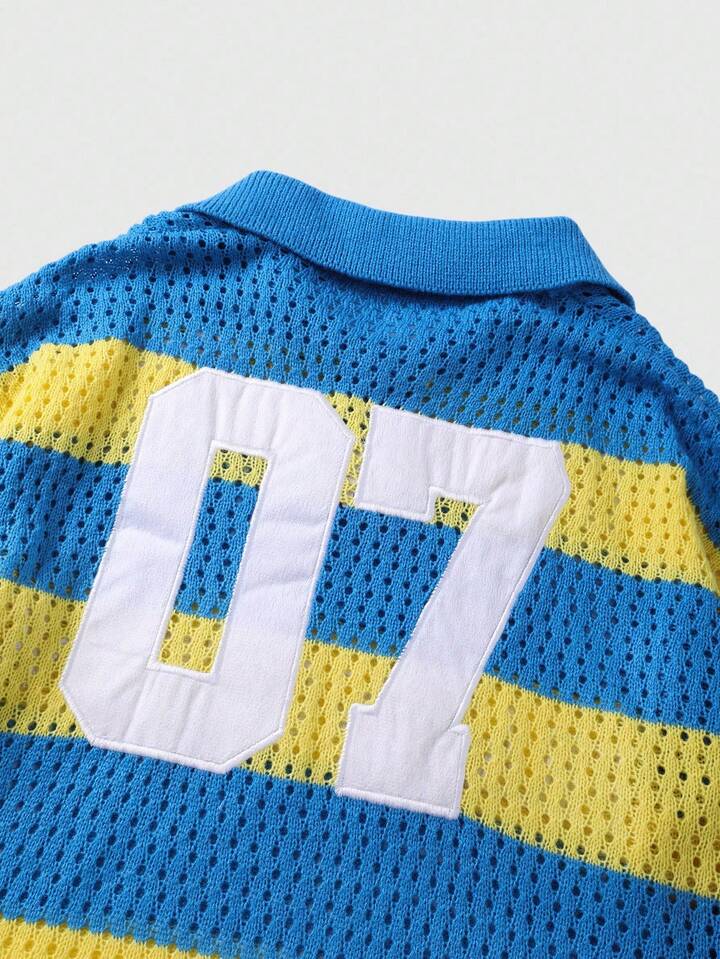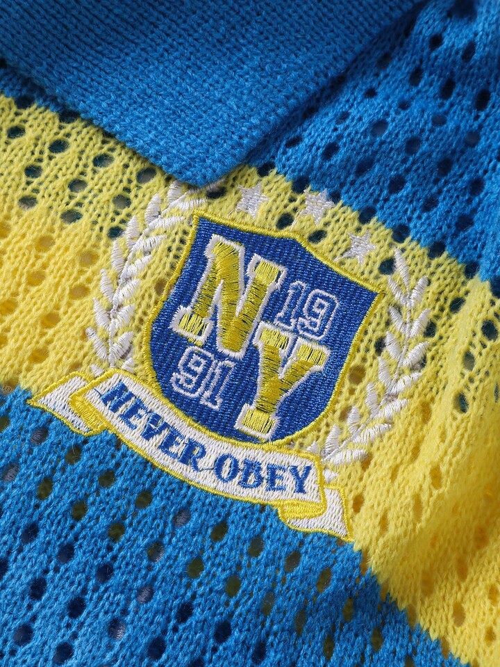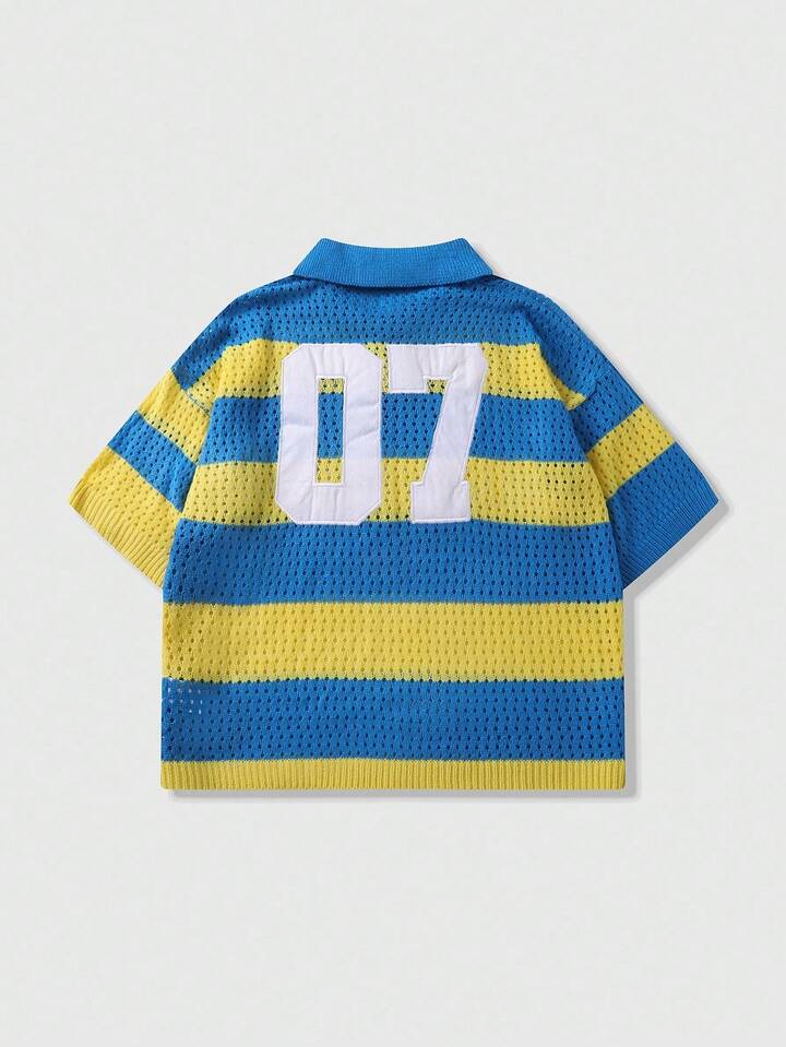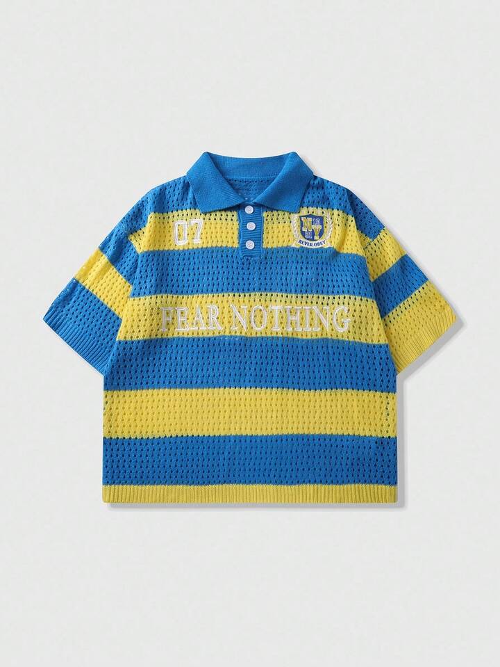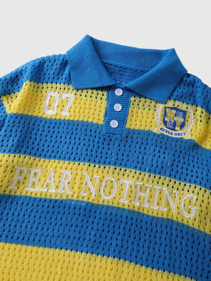 Prep Jersey de punto con rayas bordadas para hombre, camisa polo de punto de manga corta