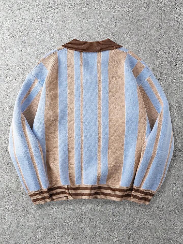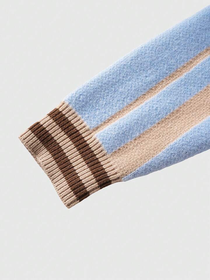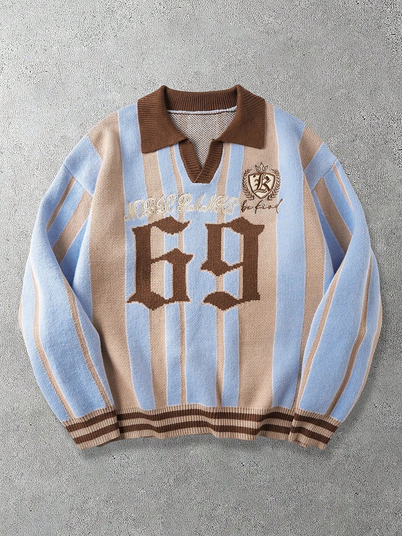 Prep Suéter casual holgado con rayas y bordado de letras en jacquard para hombre