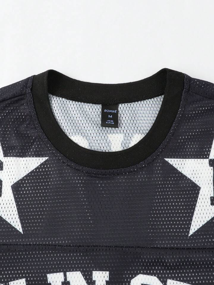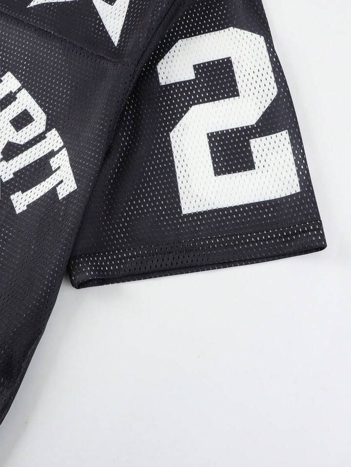 Prep Camiseta deportiva de malla de jersey con estampado de letras para hombres, jersey atlético, rave