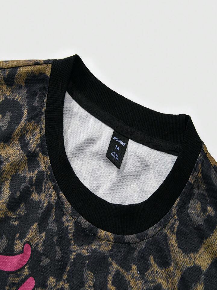 Prep Camiseta de manga corta casual holgada con cuello redondo y estampado de leopardo numérico para hombres