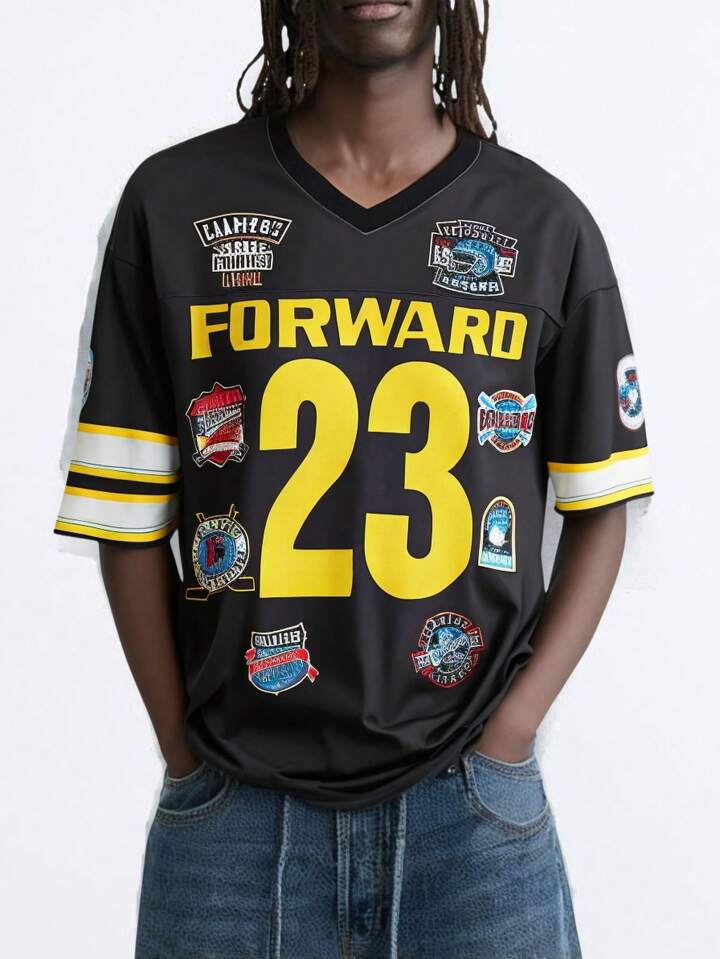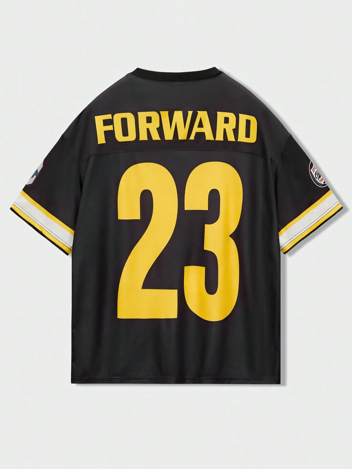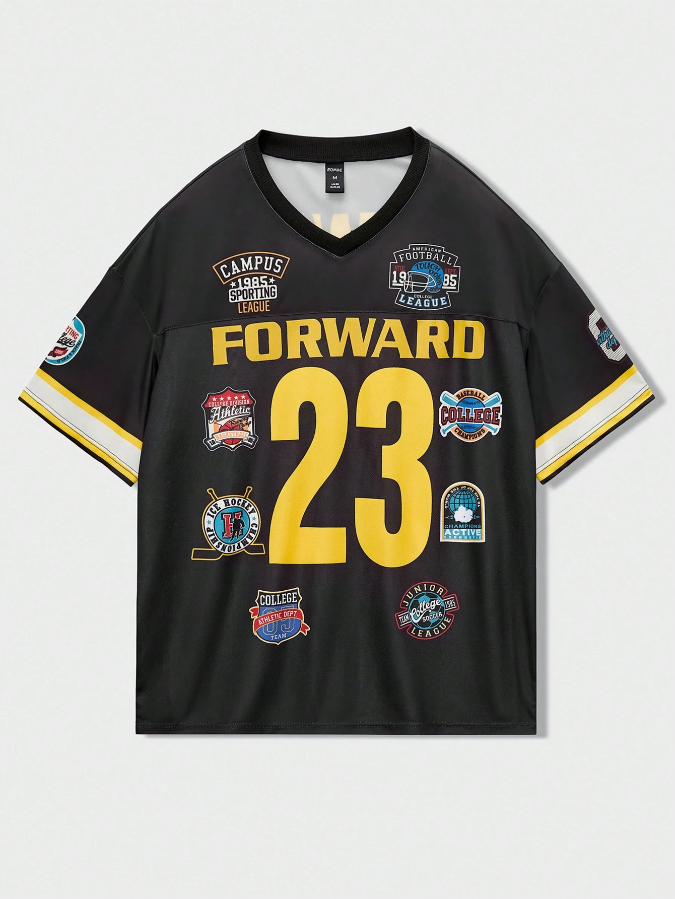 Prep Camiseta de manga corta estilo jersey de fútbol con estampado de letras y números para hombres