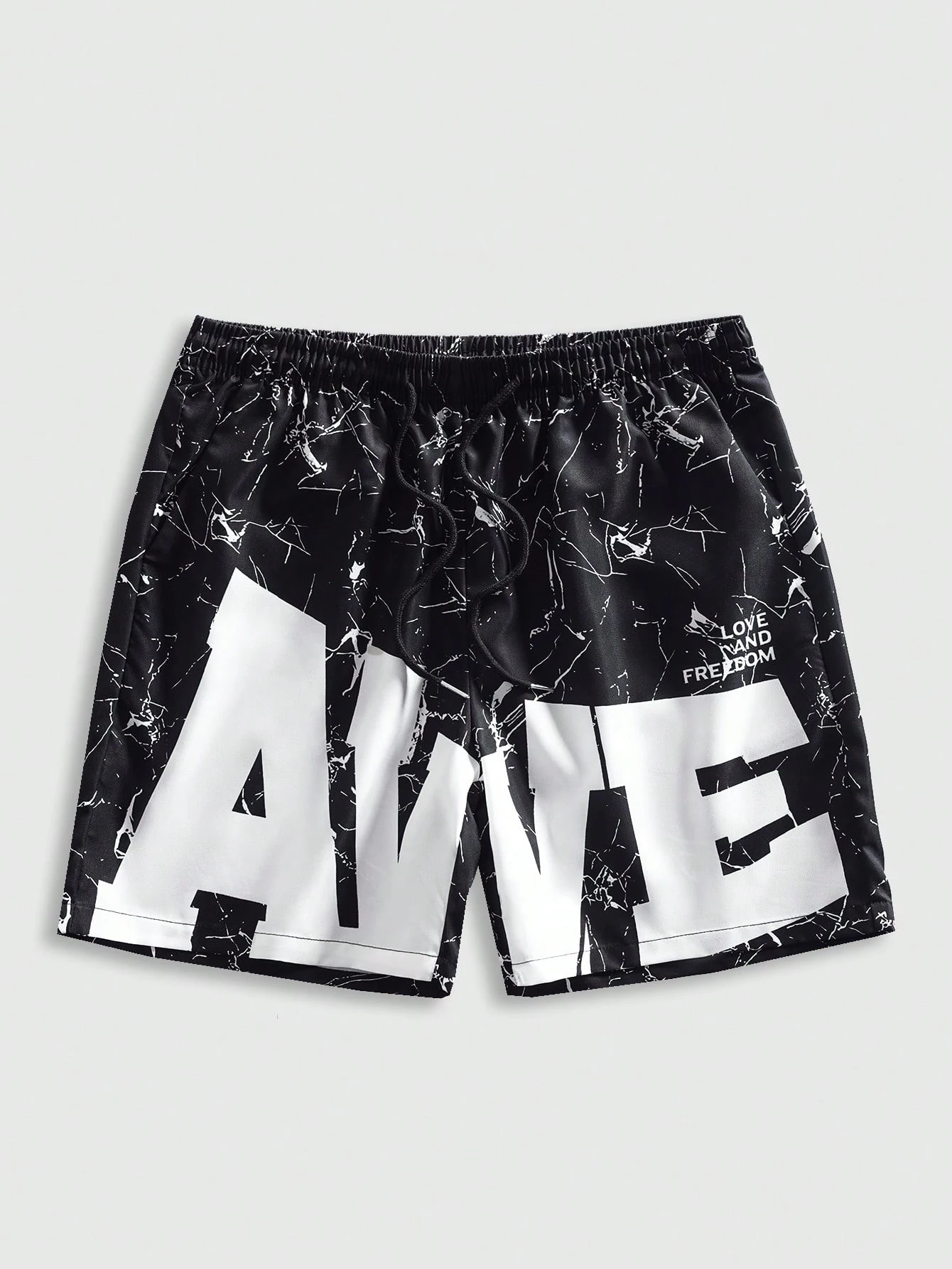 Prep Pantalones cortos casuales y versátiles de uso diario con estampado de letras para hombres