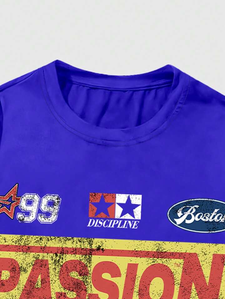 Prep Camiseta de béisbol de manga larga con estampado de letras para hombre, adecuada para uso diario, primavera/verano