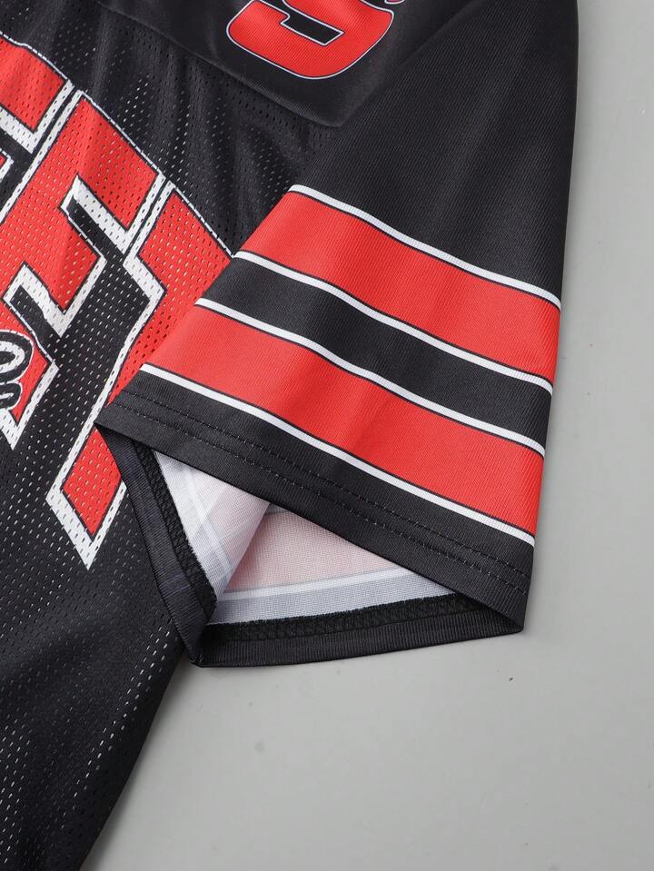 Prep Camiseta de manga corta de malla y parches para hombre, estilo jersey de fútbol deportivo, jersey atlético