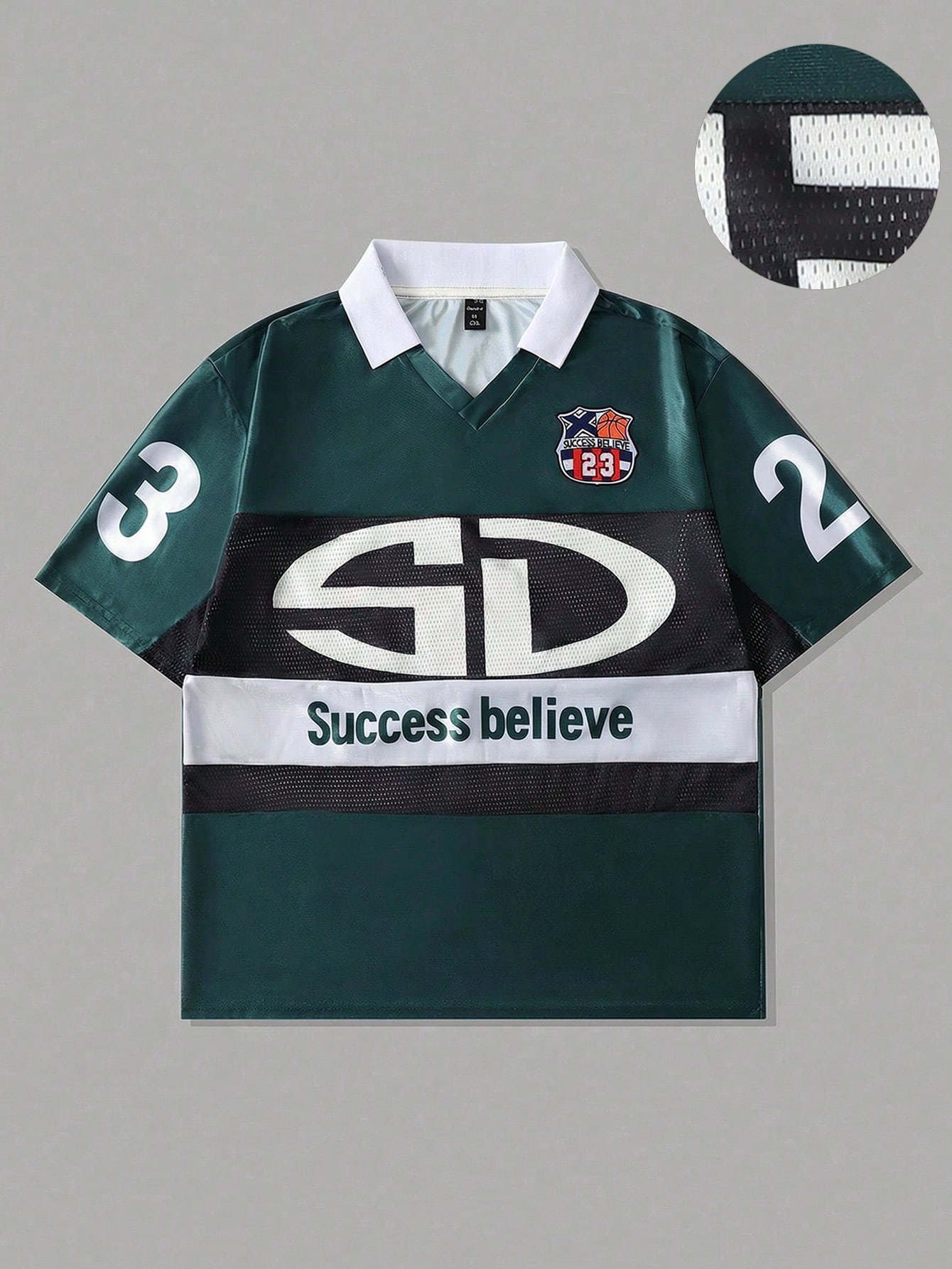 Prep Camisa polo deportiva de malla y parches para hombre, jersey de manga corta